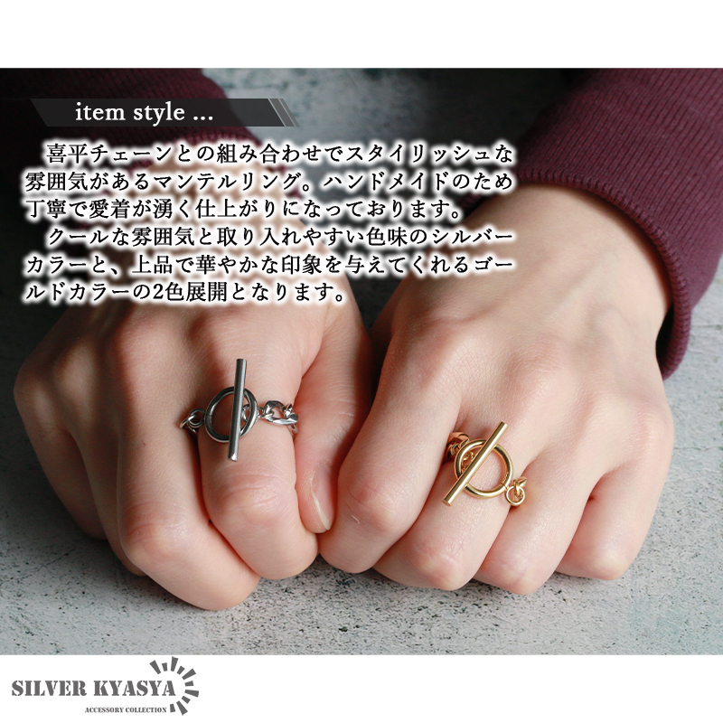 お洒落な見た目と高機能で人気のマンテルタイプの留め具デザインです。大きめのサークルが指元をすっきりと女性らしく見せてくれます。