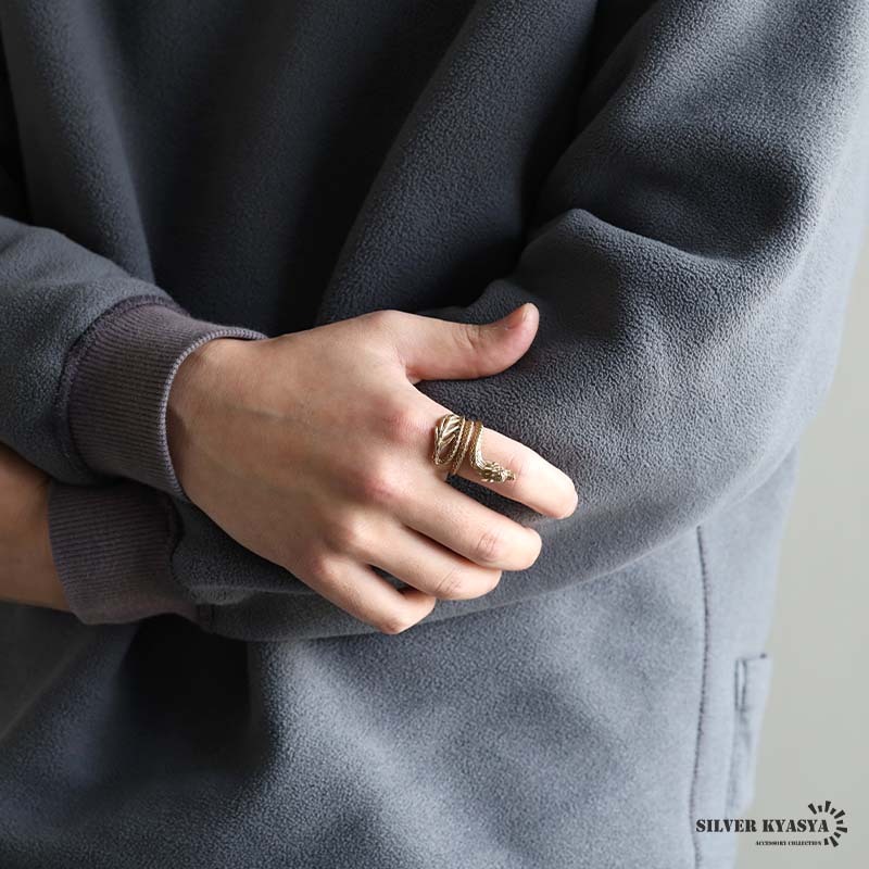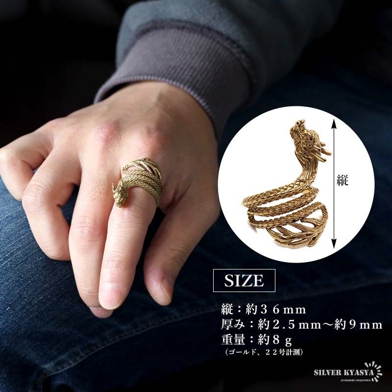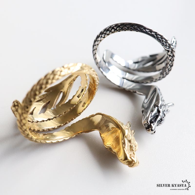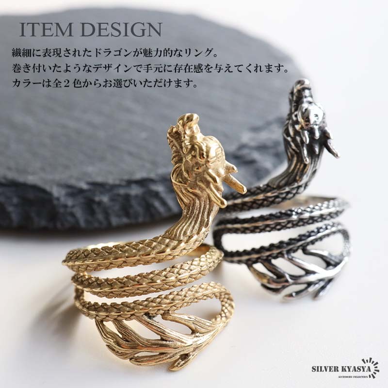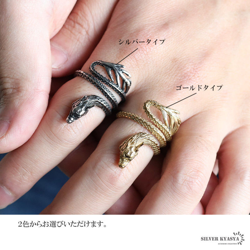 繊細に表現されたドラゴンが魅力的なリング。巻き付いたようなデザインで手元に存在感を与えてくれます。カラーは全2色からお選びいただけます。