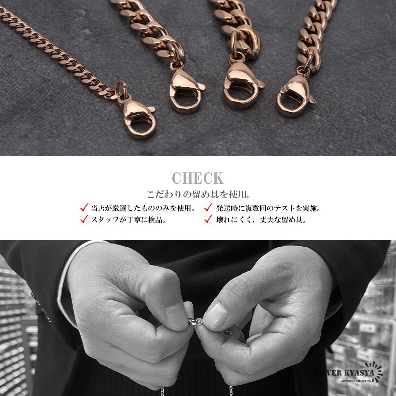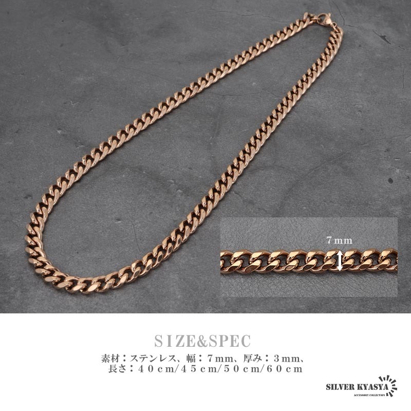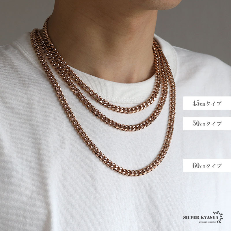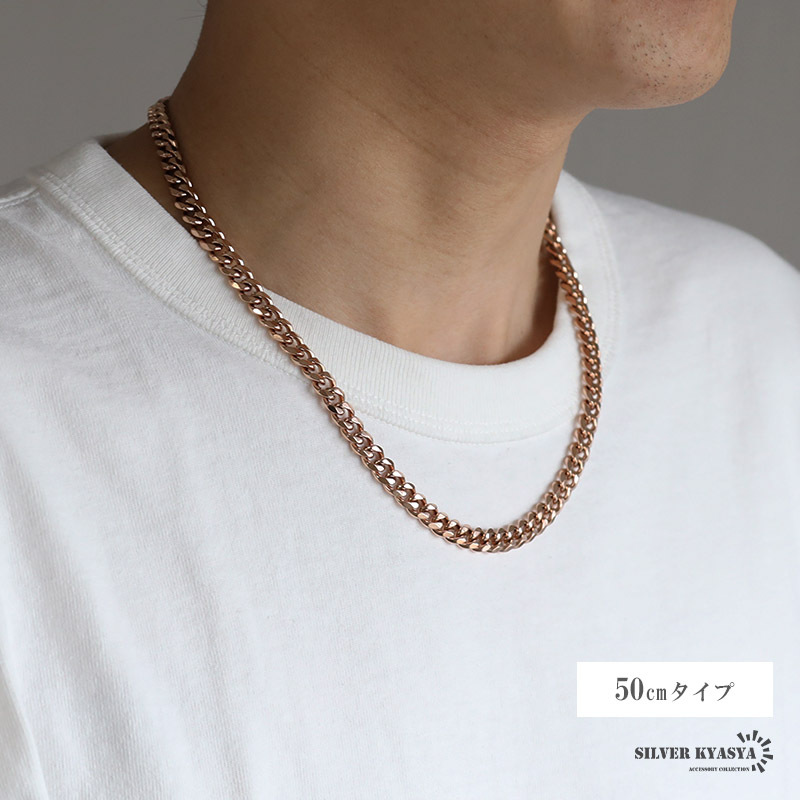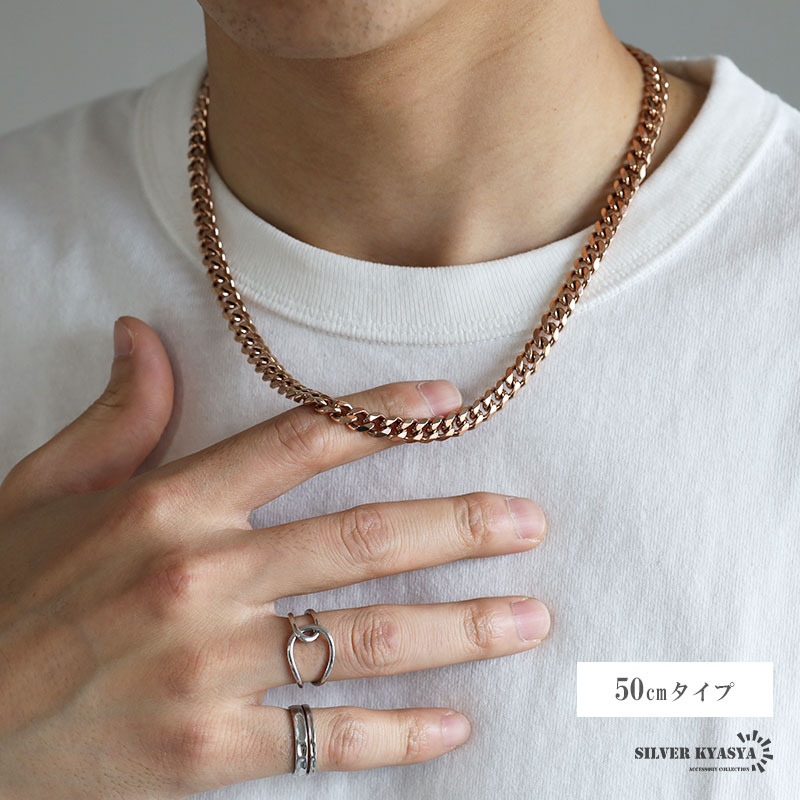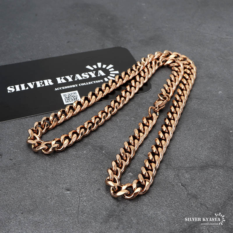 | 商品概要 | ■ローズゴールド×喜平チェーン ローズゴールドが上品に輝く喜平チェーンネックレス。幅7mmが丁度よい存在感を放ち、胸元を華やかに演出します。 ■ステンレス素材を使用 金属部分は頑丈なことで知られるステンレス素材を採用。耐久性はもちろん耐水性も高く水場での着用も可能。金属アレルギーも出にくいとされている金属です。 |