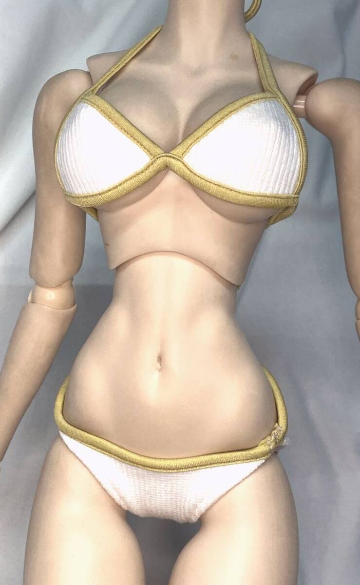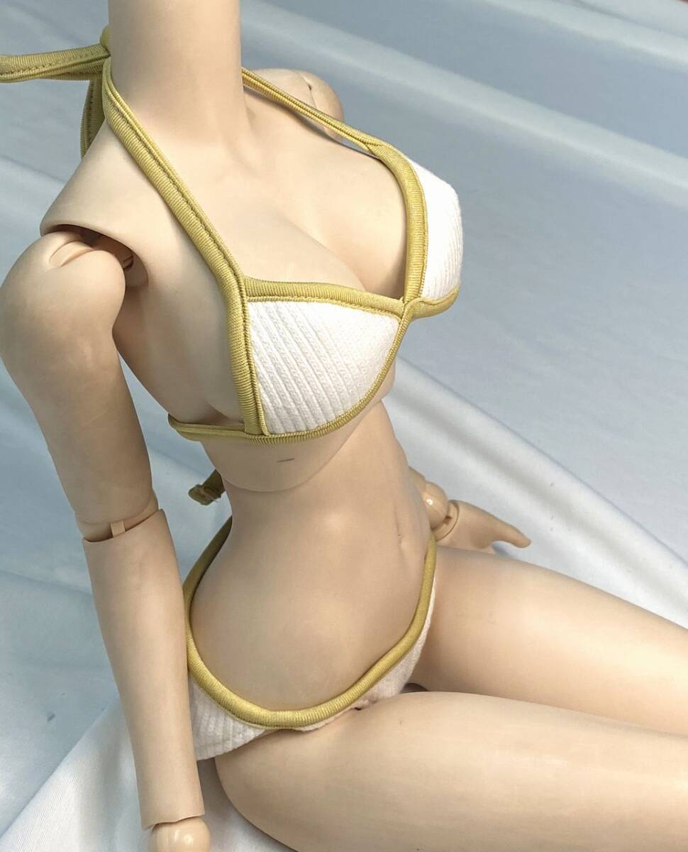 DD等60cm級ドール用 ビキニ風水着 (リブ白/紐:ゴールド)(送料込