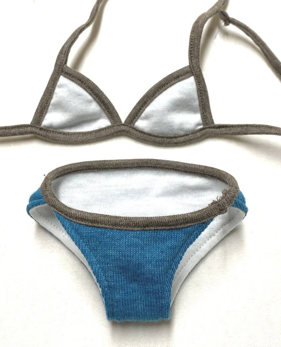 それを使った自作の、ニット布地を使ったビキニの水着です。