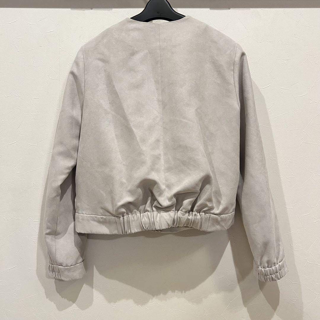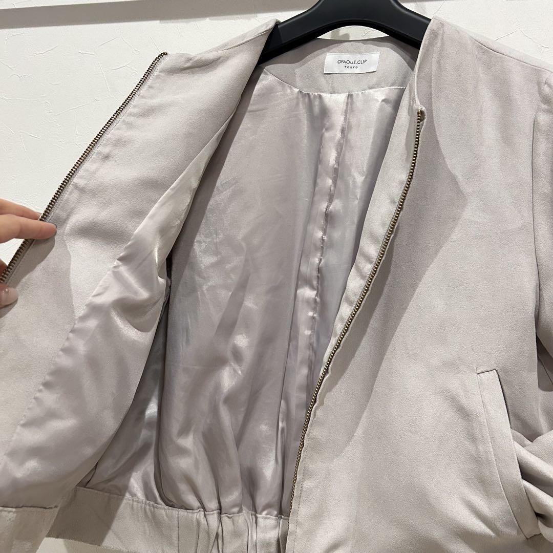 #OPAQUECLIP #オペークドットクリップ #ノーカラージャケット #ジップアップ #スエード調 #ベージュ #軽アウター #春アウター #秋アウター #きれいめ #大人カジュアル #通勤コーデ