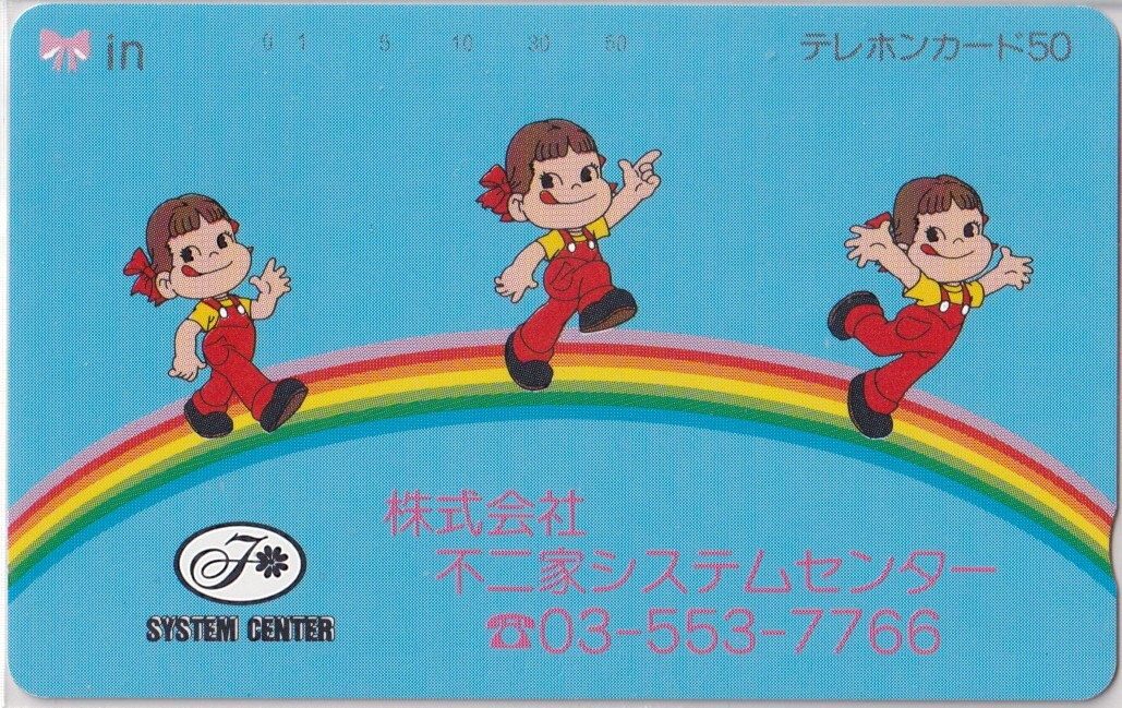 =不二家ペコちゃん= 「システムセンター 虹」販促テレカ #72760