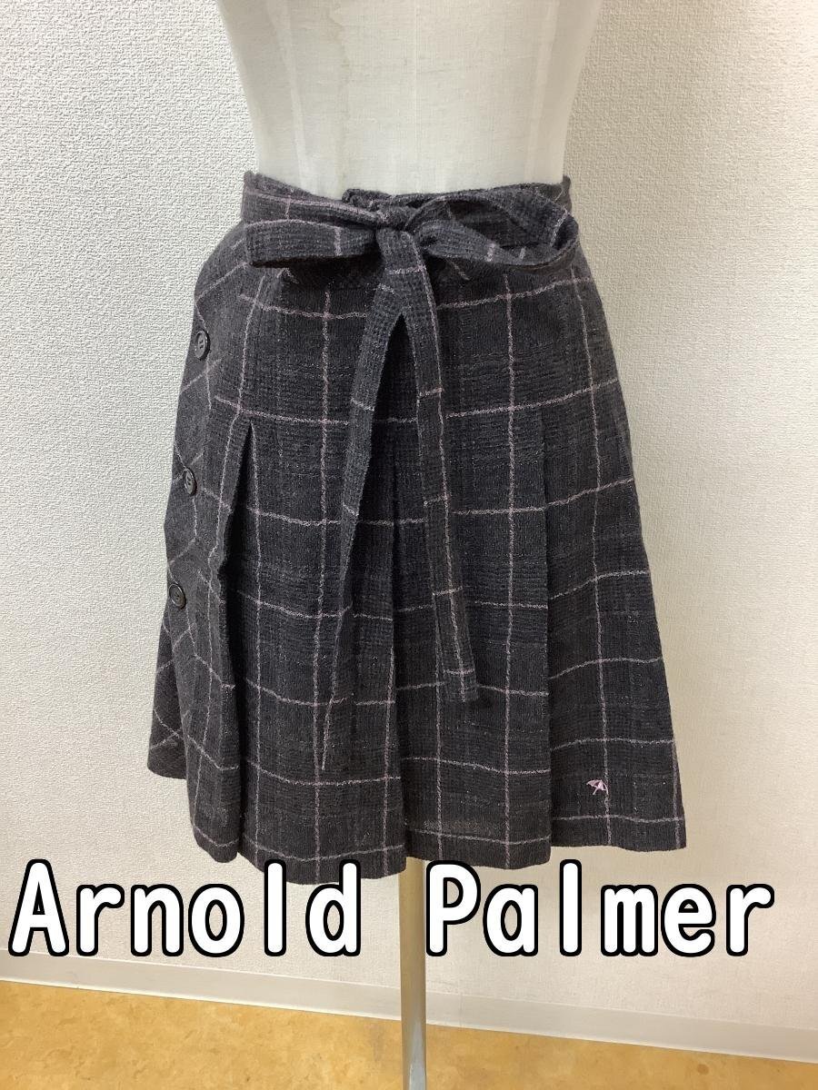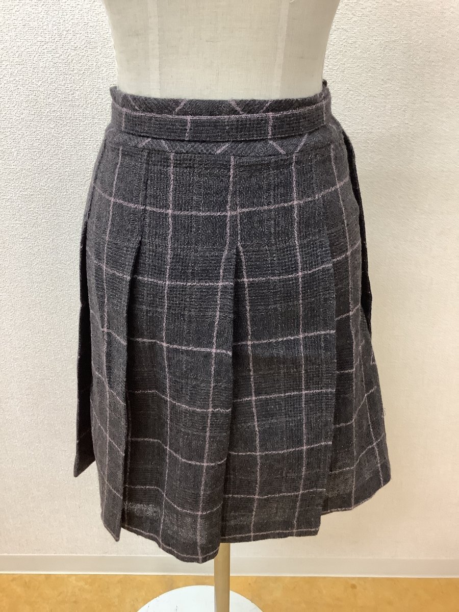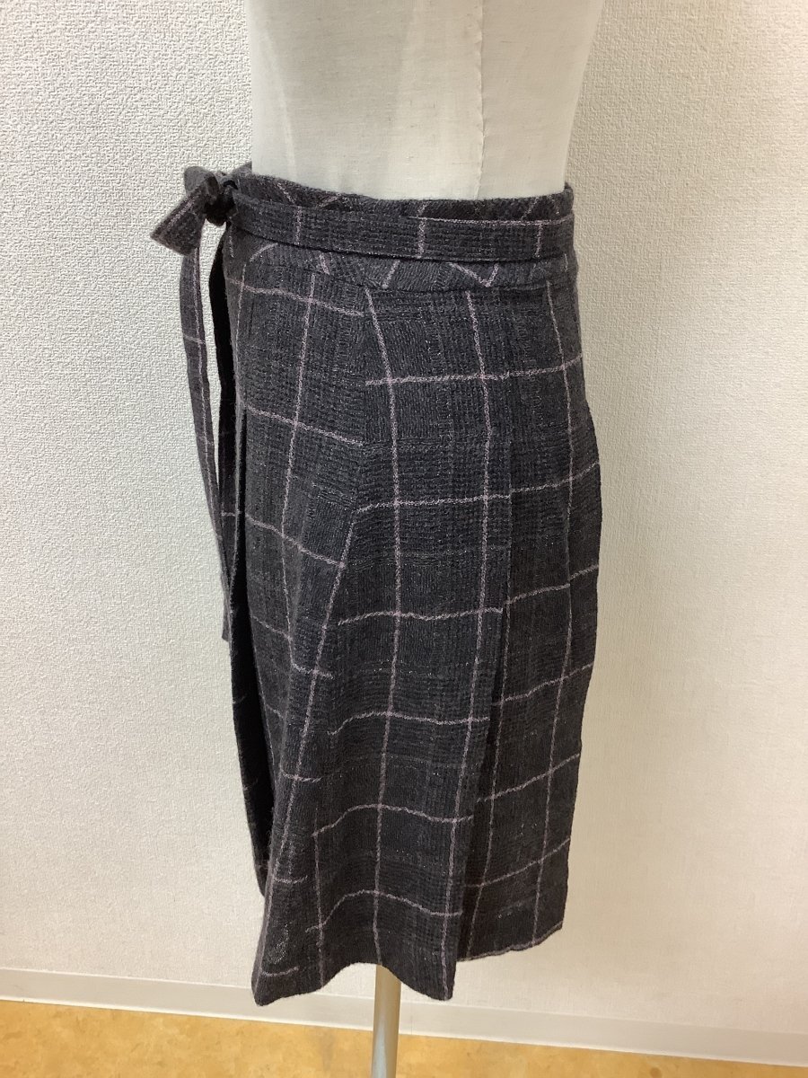| 管理番号:139514 アーノルドパーマー (Arnold Palmer) 茶×黒×ピンクチェック ラップスカート ウール ラメ入り 表示サイズ:1 実寸(参考)