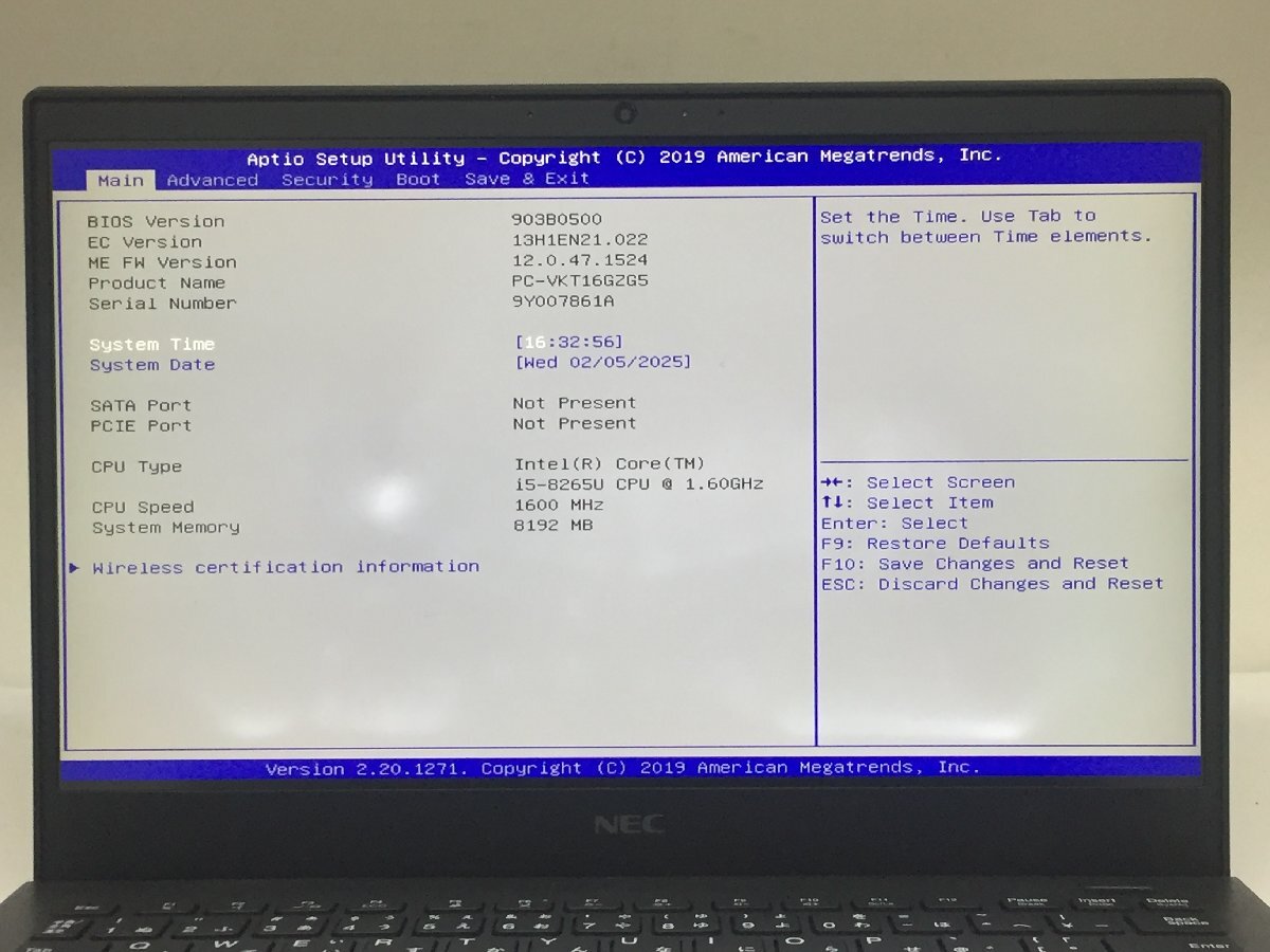 ジャンク/ NEC PC-VKT16GZG5 Intel Core i5-8265U メモリ8.19GB ストレージ無し 【K08233】