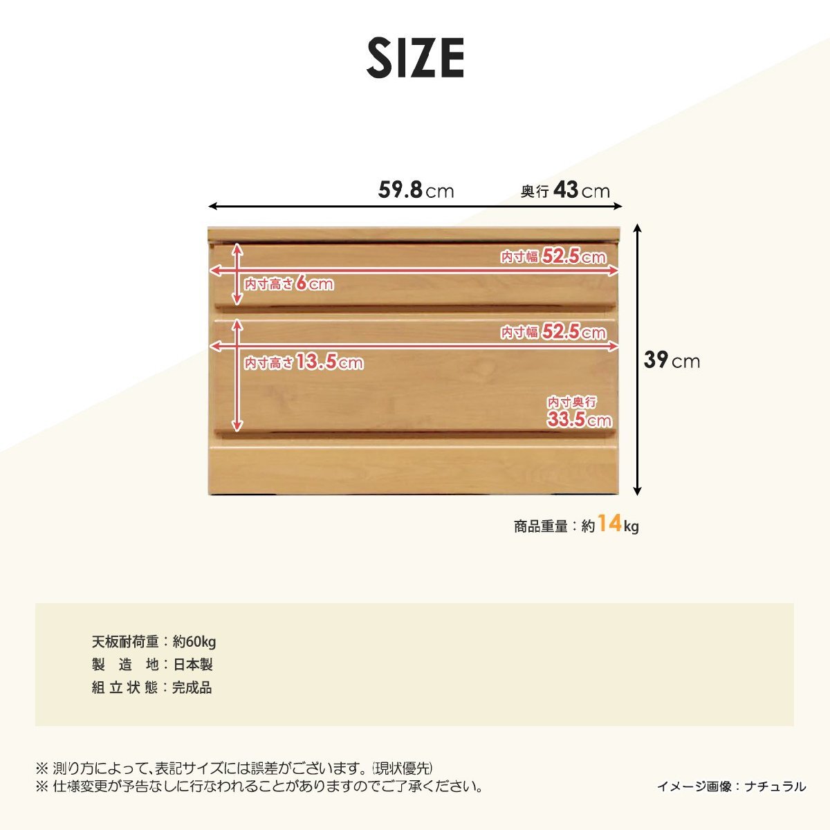 チェスト タンス ローチェスト たんす 木製 おしゃれ 衣装ケース 洋服タンス 2段 幅60cm 収納家具 ブラウン