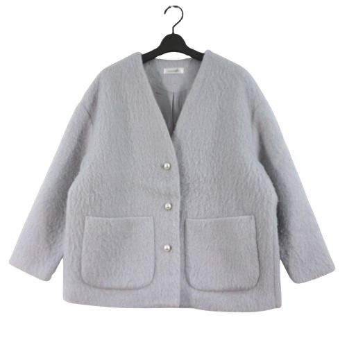 Meraki メラキ パールボタンノーカラーコート グレー