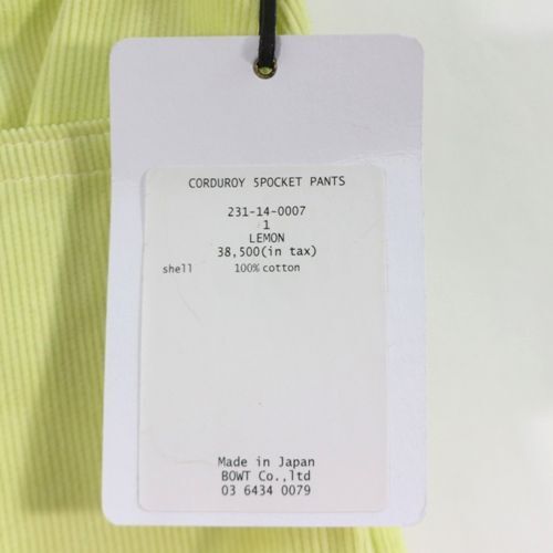 BOWTE バウト 23SS CORDUROY 5POCKET PANTS コーデュロイ パンツ 1 レモン