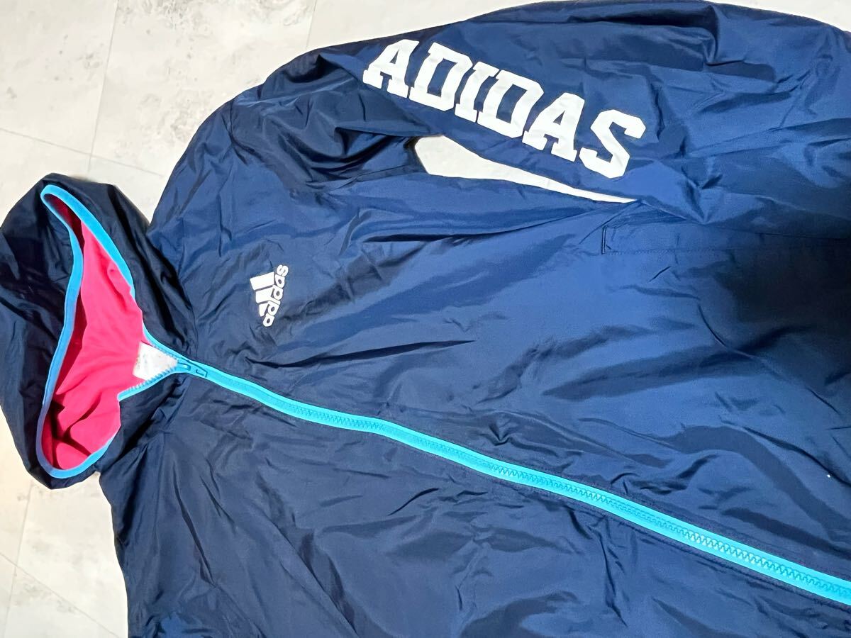 アディダス adidas 紺 ピンク パーカー ジップアップ フード 裏起毛 ロゴ