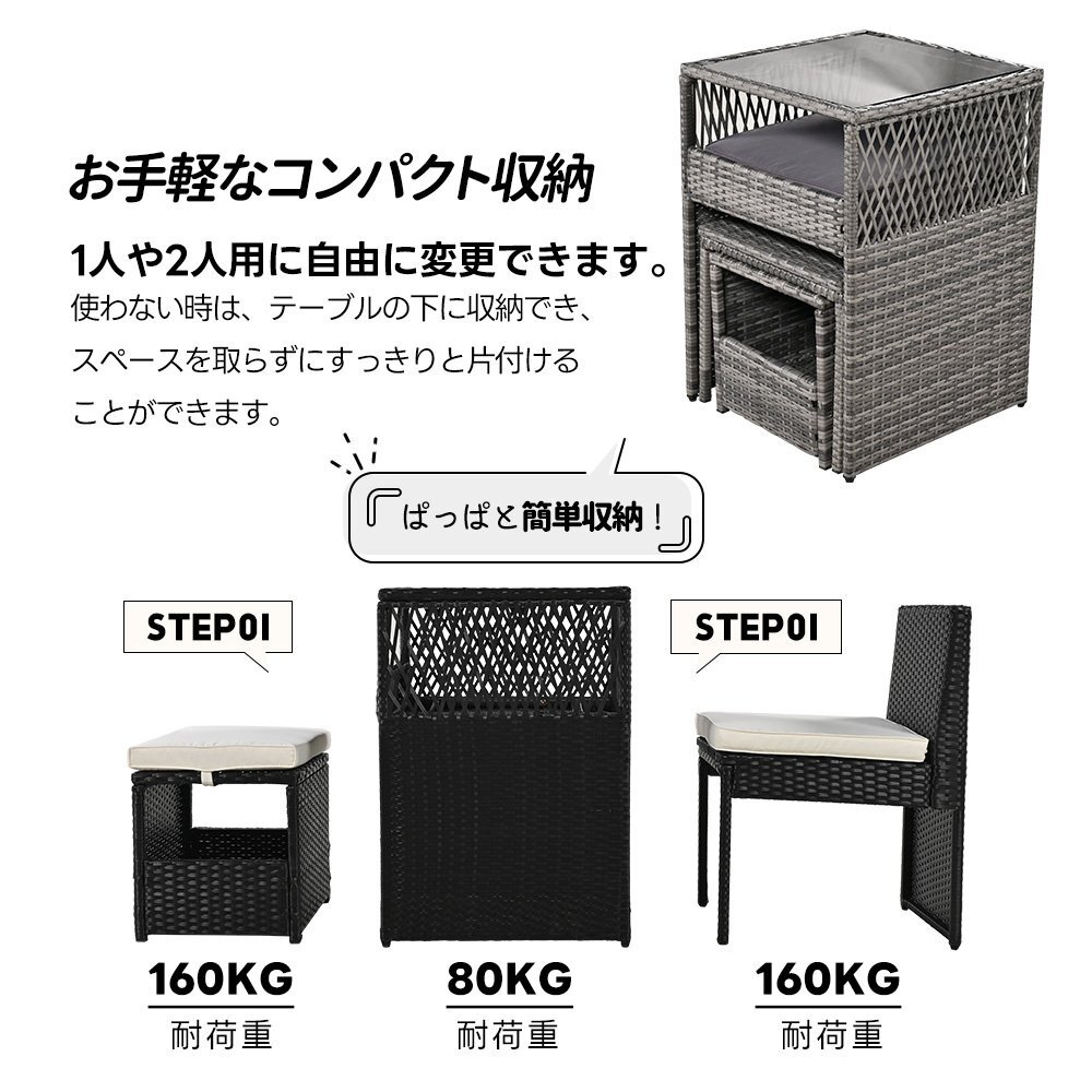 ガーデンファニチャー テーブルセット ガーデン テーブル ソファー チェアー ラタン調 組合せ自由 撥水加工 【ブラック+グレー】