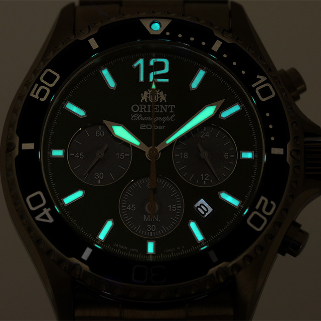 仕様 | 20気圧防水 平均月差+20秒?-20秒 駆動時間:約6カ月 クロノグラフ スクリューバック 逆回転防止ベゼル ルミナスライト(針、インデックス) 日付表示 ねじロック式りゅうず 日本製 |