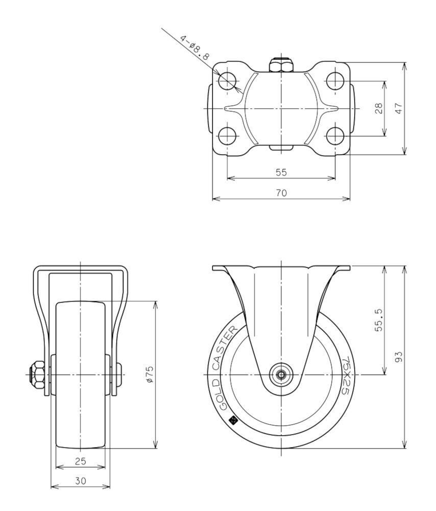 車輪径(材質) 75Φ(ウレタン)