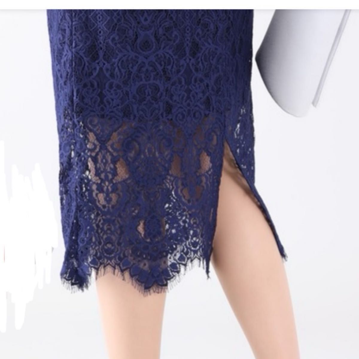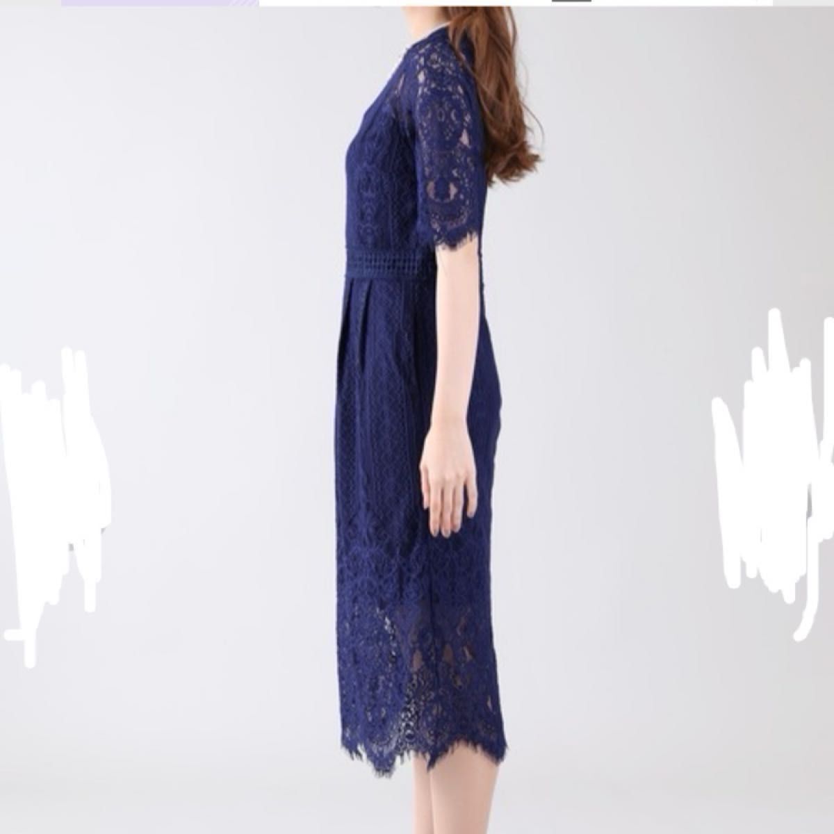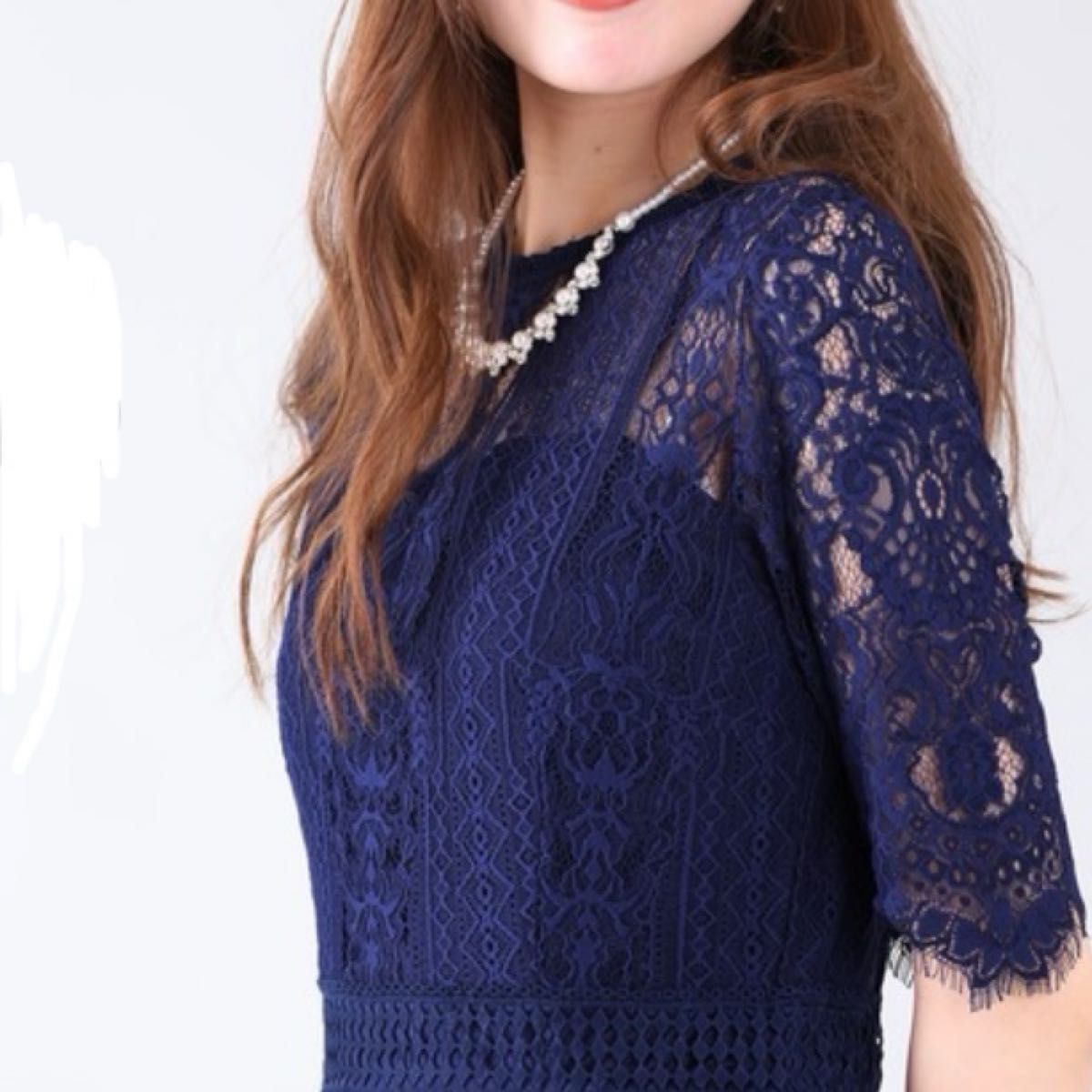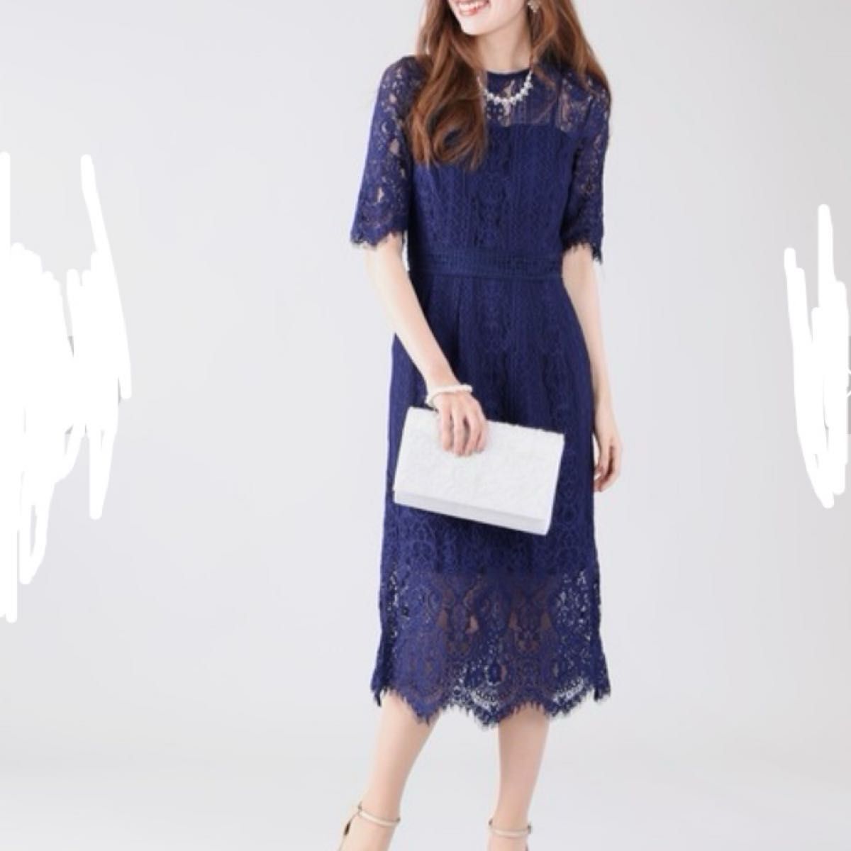 贅沢にパネル柄レースを使ったトレンドライクな総レースのパーティーワンピース・結婚式ワンピース
