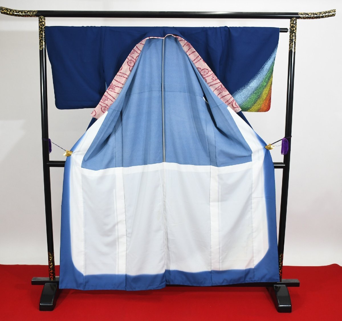 | サイズ | ▼身丈 (背中から) 153cm ▼裄丈 66cm ▼袖丈 49cm ▼後巾 30cm ▼前巾 26cm |