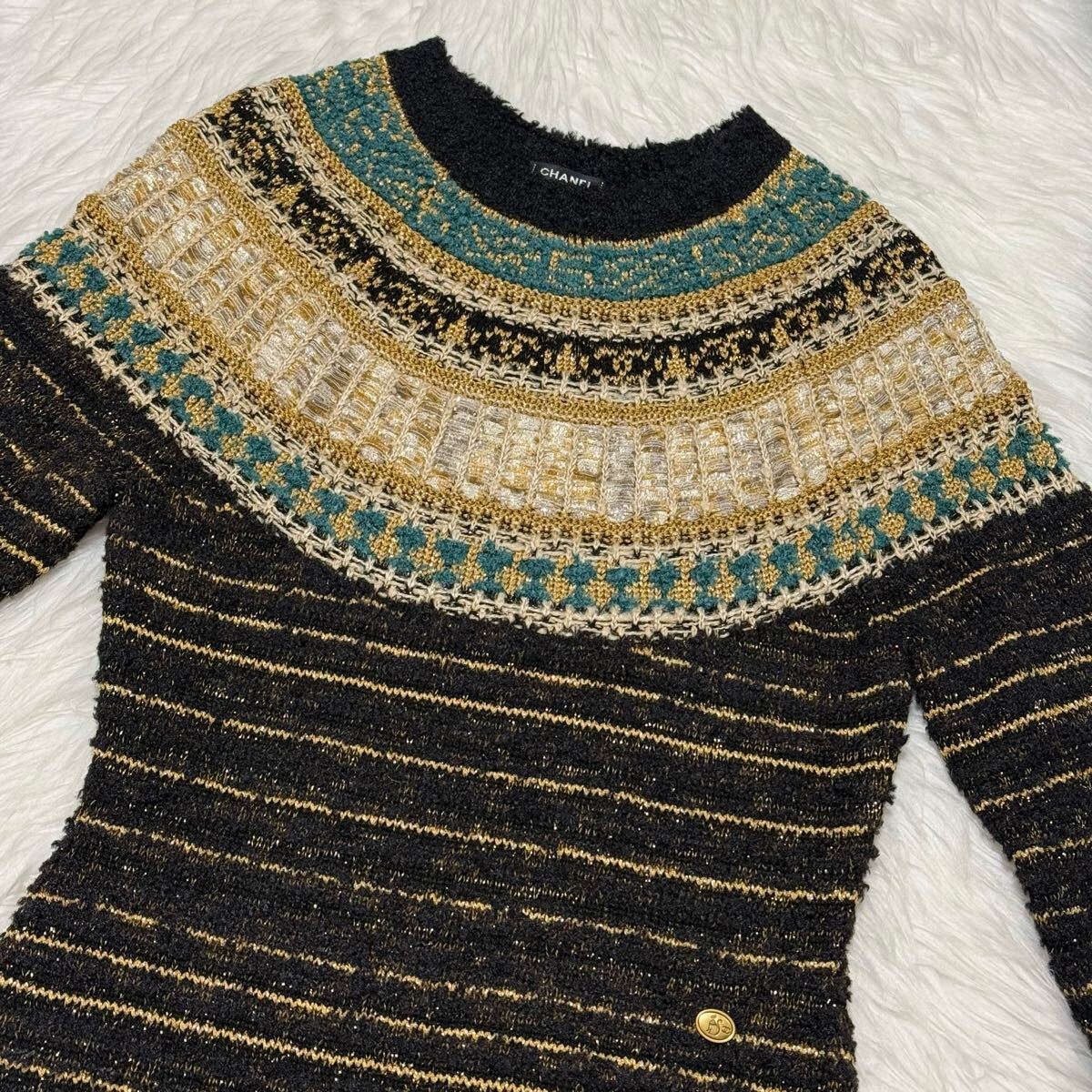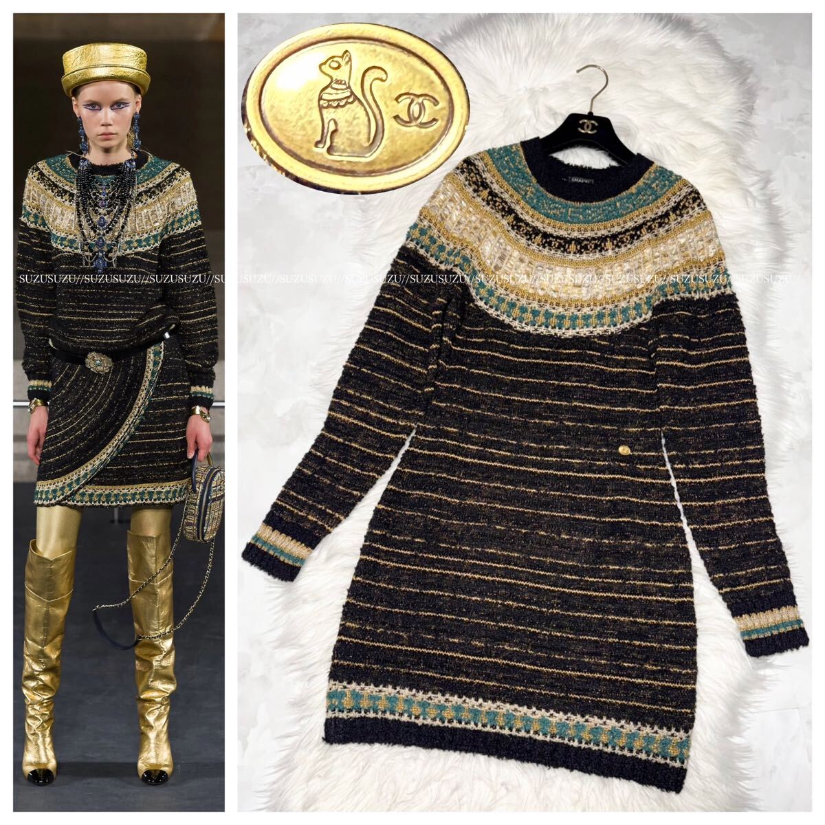 本物 エジプトランウェイモデル シャネル 最高級ライン COCO装飾 クレオパトラ 長袖 ニット ワンピース ドレス 36 ココマーク CHANEL | |||||