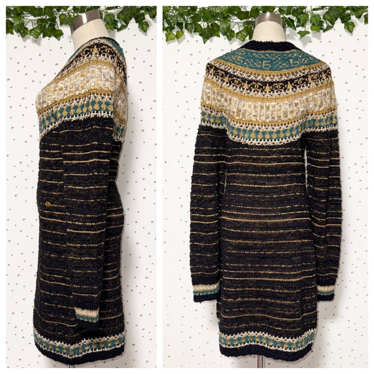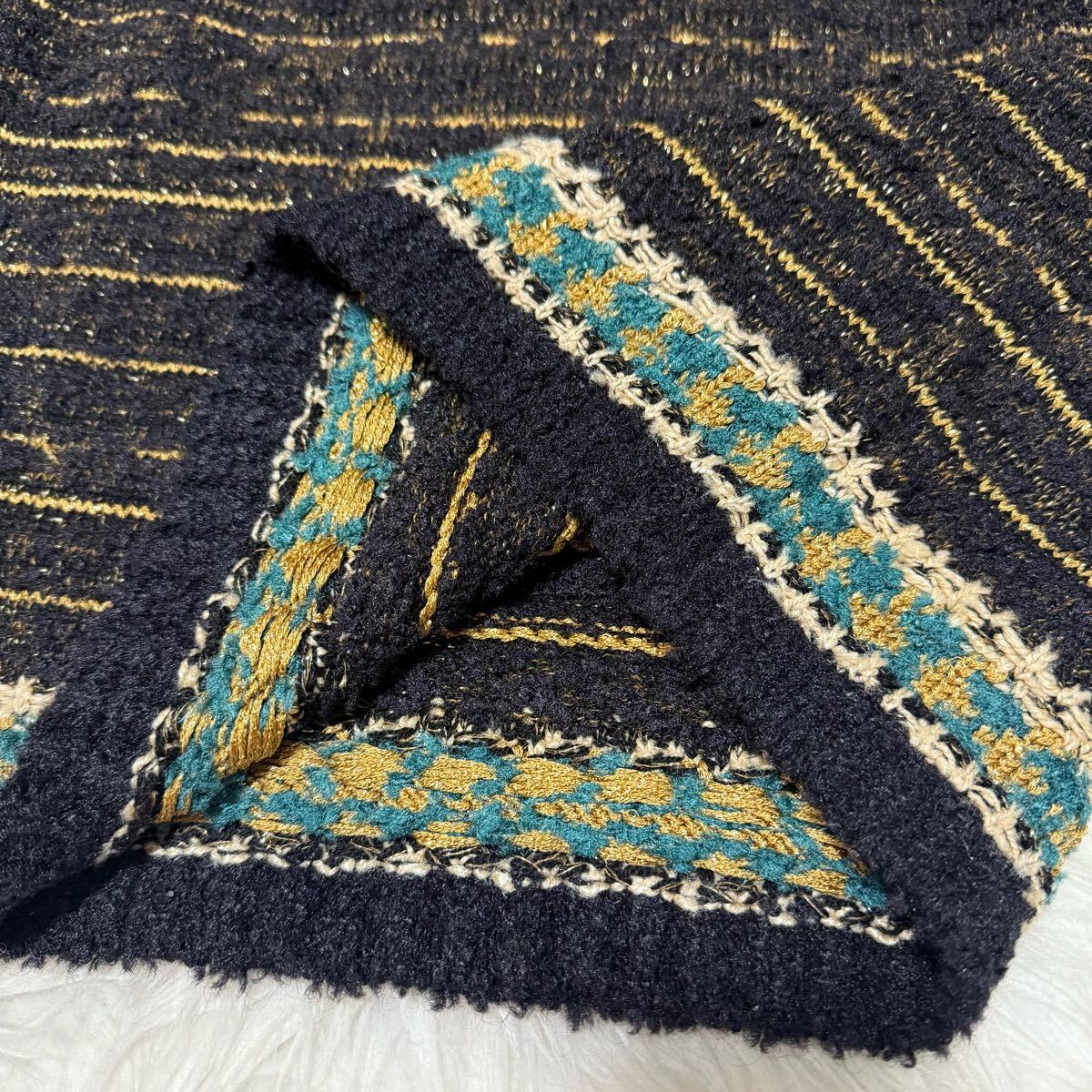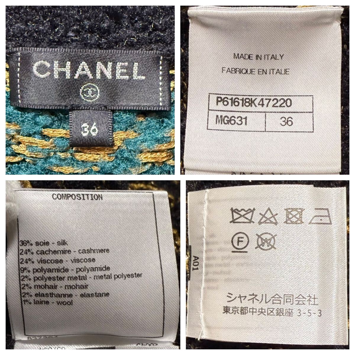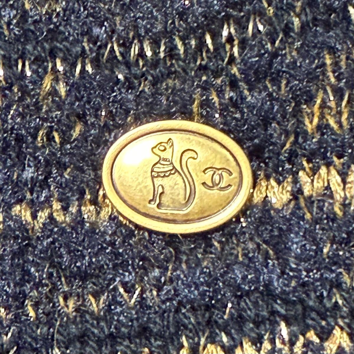 まさにクレオパトラを連想させるような、華やかなシャネルのニットドレスです。 ブラックをベースに、ゴールドやグリーンの繊細な模様が編み込まれたデザインが、まるで芸術作品のような美しさを放っています。 また、ゴールドのストライプがさりげなく輝きを添え、上品さと華やかさを同時に演出しているのも魅力的です。 このドレスをまとえば、特別な場面でも自信を持って輝けること間違いなしです。 サイズ:36(トルソーのサイズは9号です) 裄丈:約80cm 身幅:約40cm ウエスト:約34cm 着丈(背面中央):約86cm (素人採寸ご了承ください) 素材:36% シルク・24% カシミヤ・24% ビスコース・9% ポリアミド・2% 金属ポリエステル・2% モヘア・2% エラスタン・1% ウール 状態:若干の毛羽立ち・毛玉がありますが、他に目立った傷や汚れは無く、まだまだ長く御愛用いただけるお品物になっております。 参考価格:60〜70万円程 撮影に使用しておりますハンガーは付属いたしません。 COWA25588000 | |||||