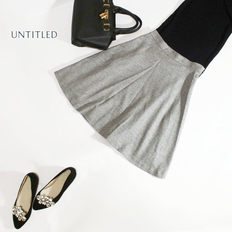 美品 アンタイトル UNTITLED 株) ワールド 冬 真冬 暖か ウール 毛87% フレアスカート ウールスカート 0 5号 7号 グレー