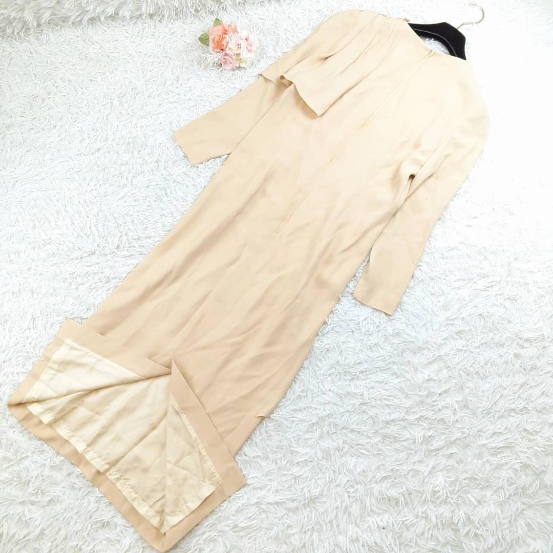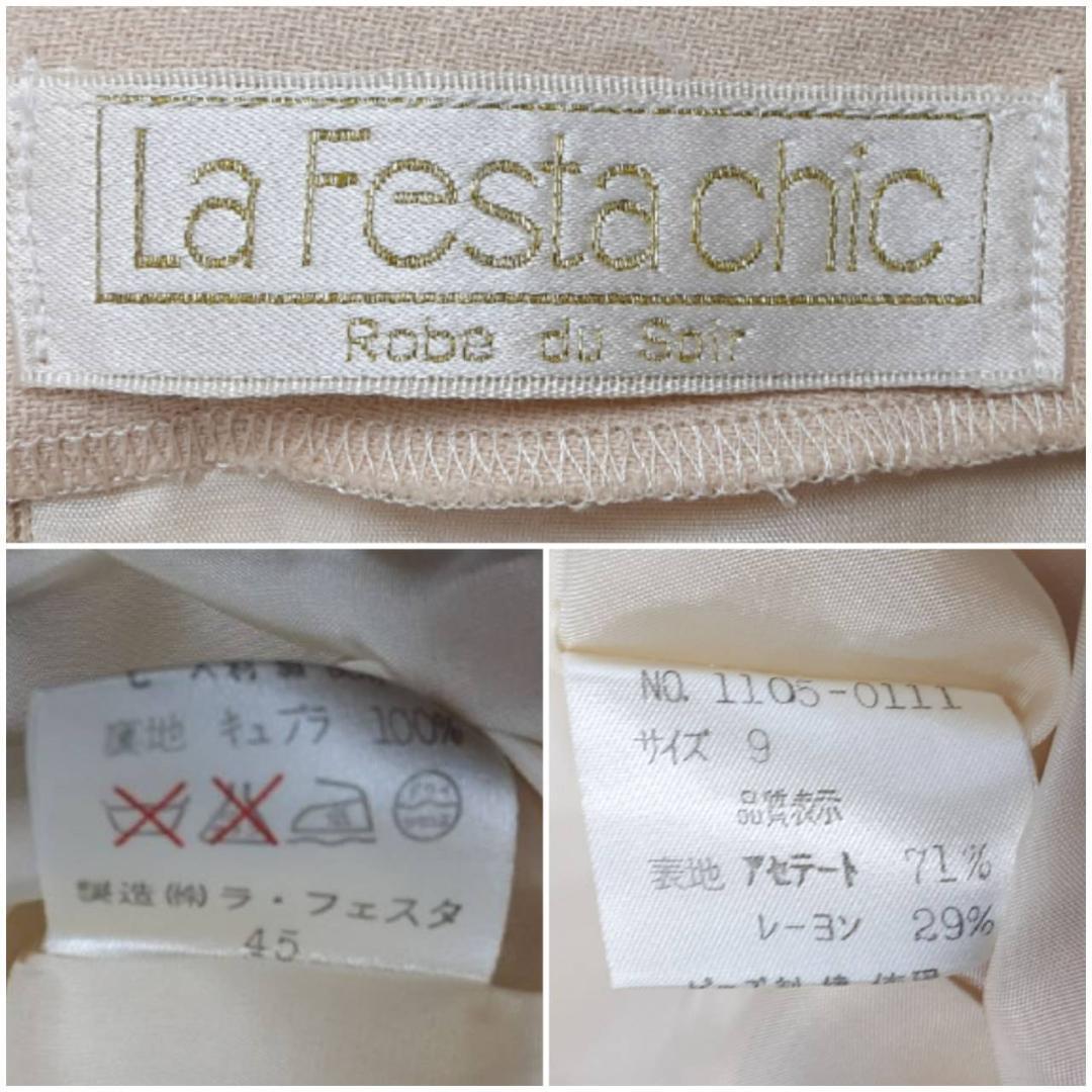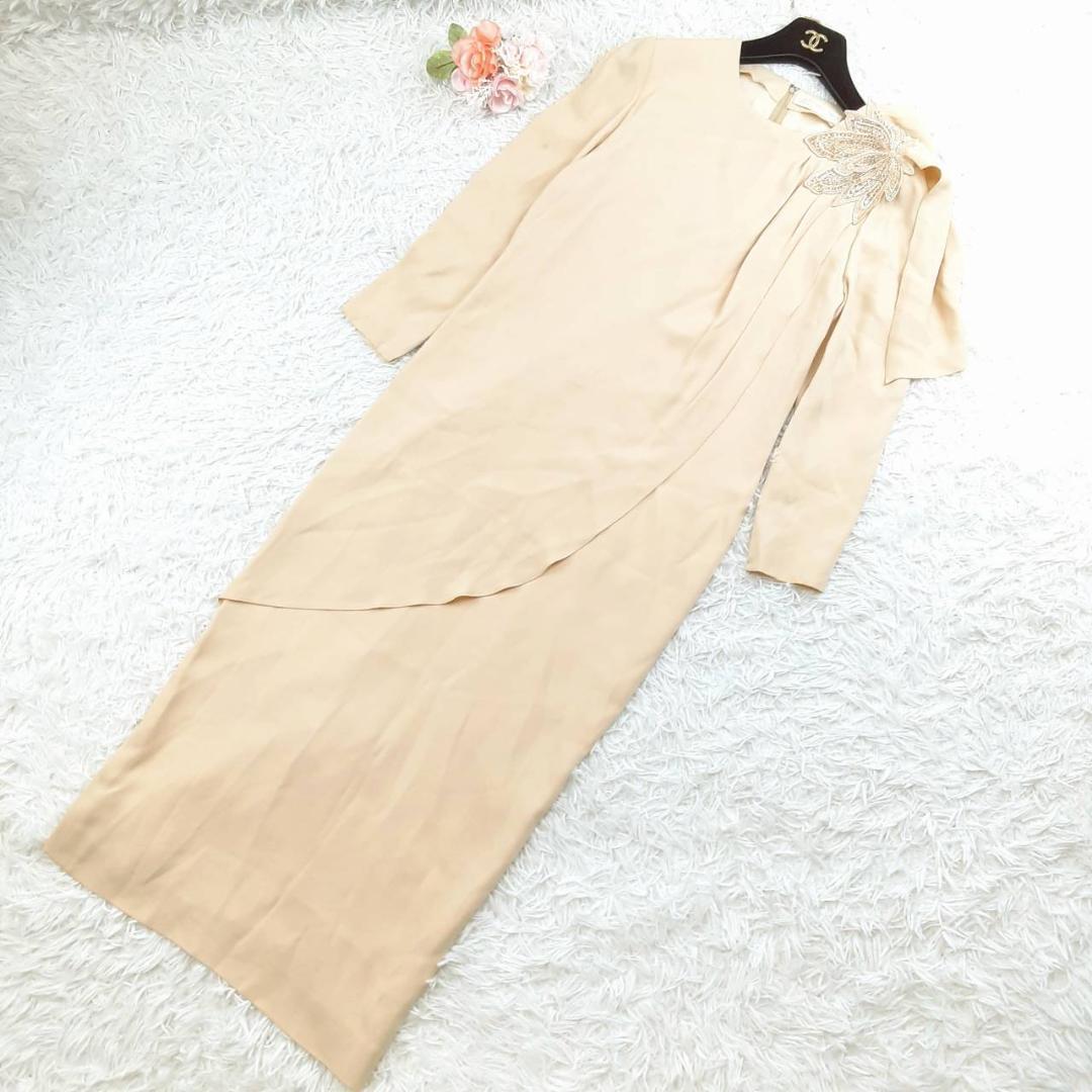 美品◎La Festa chic ラフェスタシック ロングワンピース ロングドレス ピンク 桃 ベージュ 白茶 ビジュー付 刺繍 花柄
