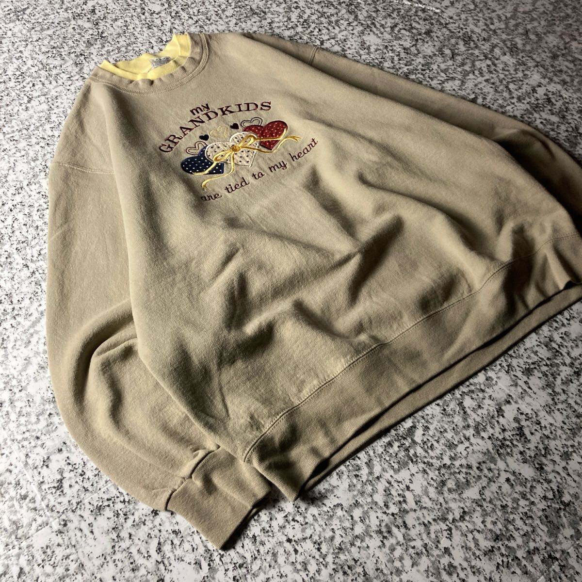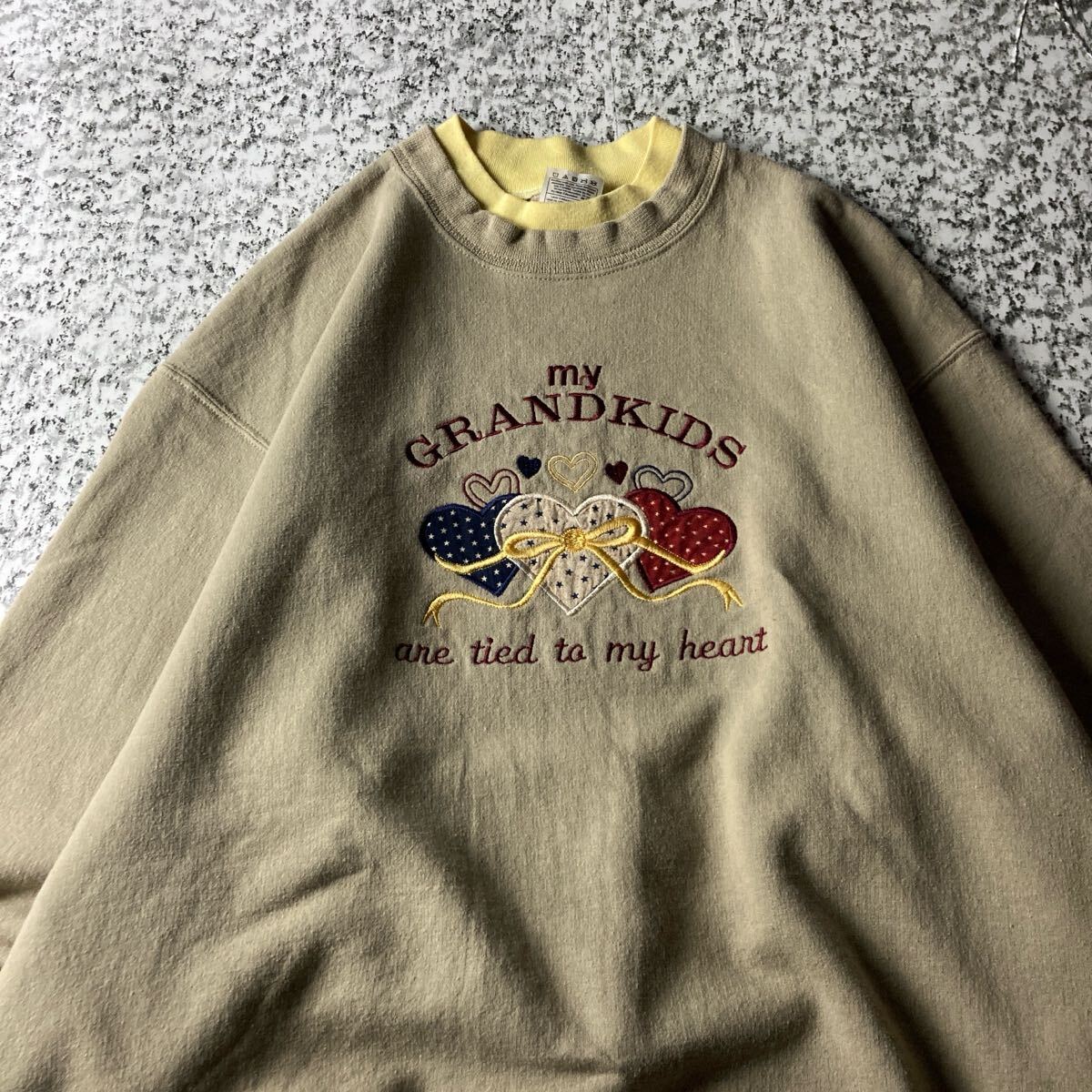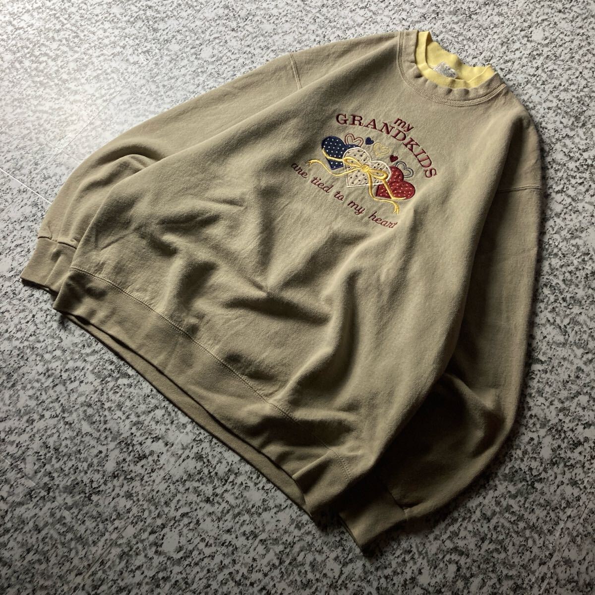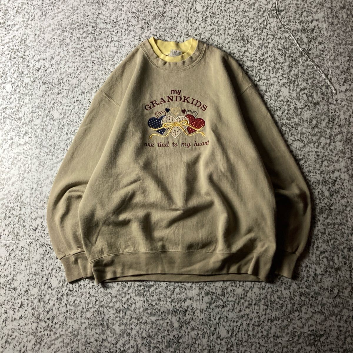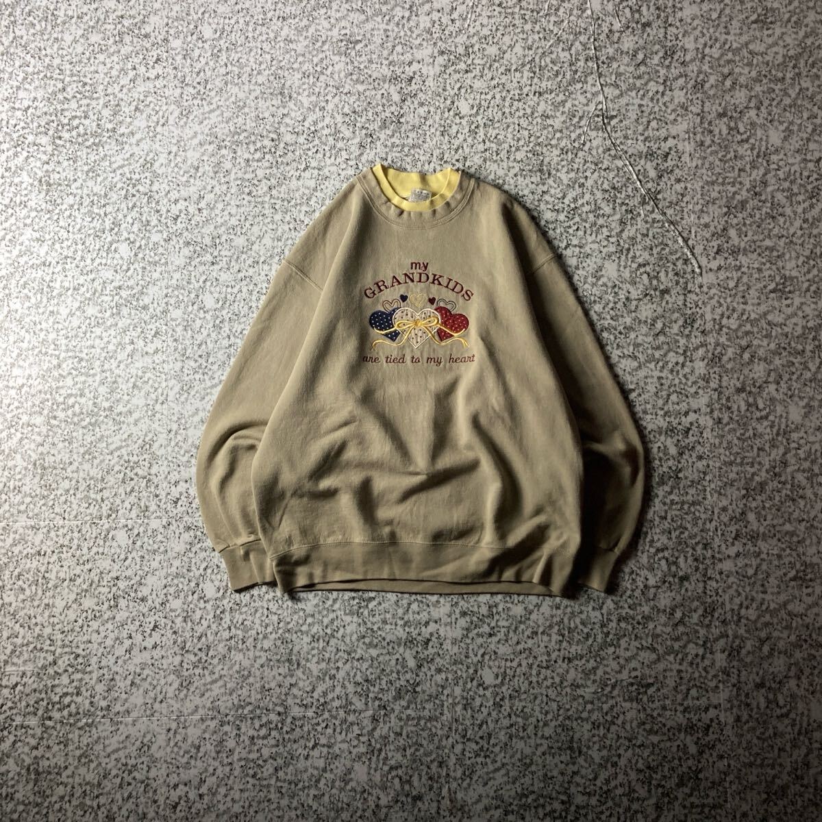 【グッドレギュラー】ダブルネック 刺繍デザイン レディーススウェットシャツ 古着 ベージュ Lサイズ レトロ