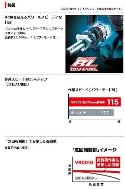 マキタ VR001GZ (本体のみ) (電池・充電器別売) 充電式コンクリートバイブレータ 40Vmax