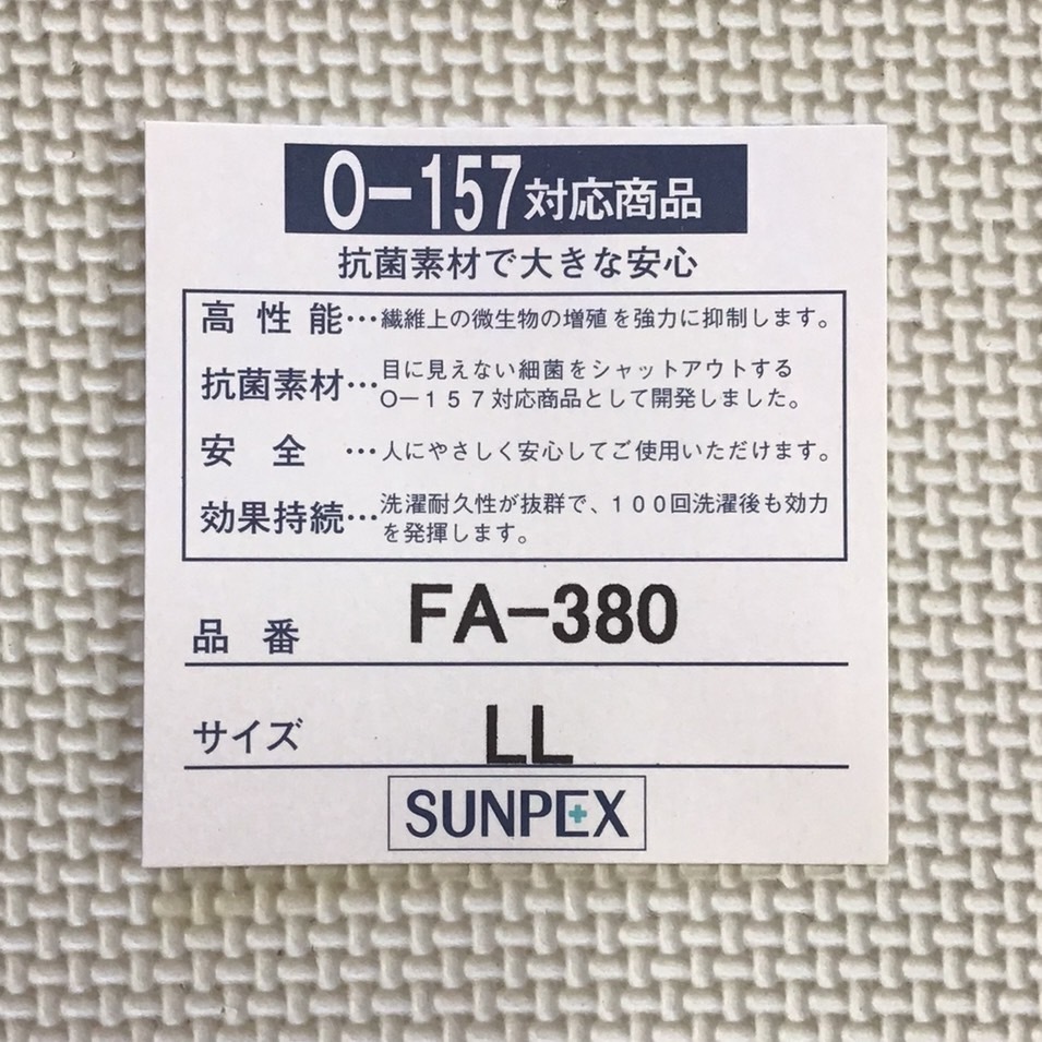 (在庫処分) 新品未使用品 SUNPEX 長袖白衣 [FA-380] サイズ LL /襟なし/抗菌加工/調理着/給食着/割烹着/調理着/実験着/医療/ワークウェア