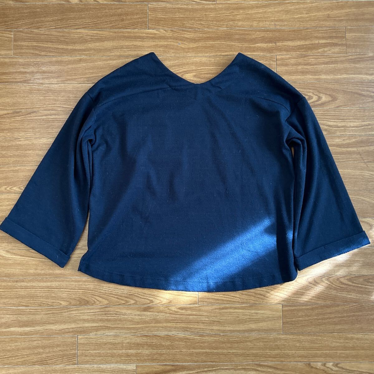 ★DAILY STYLE + crean  レディースチュニック ネイビー Vネック 長袖 サイズL 大き目 シンプル ポケット