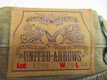 | WF155★UNITED ARROWS/ユナイデッドアロウズ メンズ パンツ コーデュロイ ブラウン系 Lot.1238 W29 L34 中古品 | ||