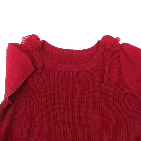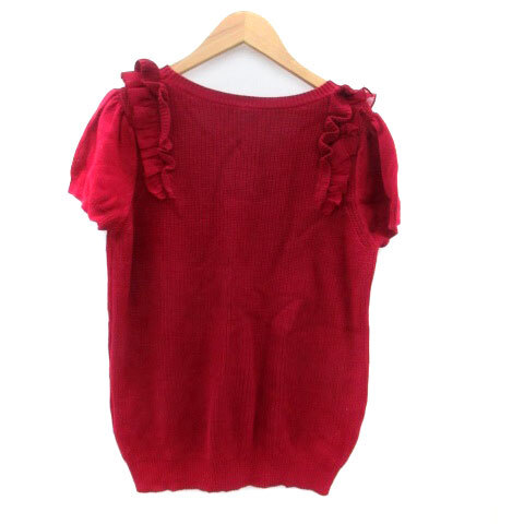 ペイトンプレイス PEYTON PLACE ニット セーター ラウンドネック 半袖 フリル 13B XL ボルドー /HO37 レディース