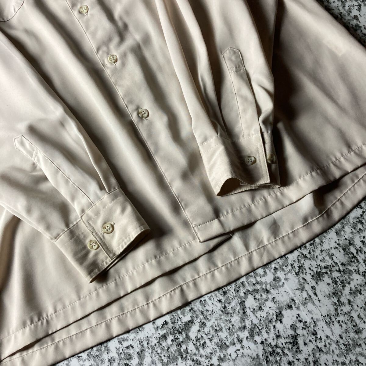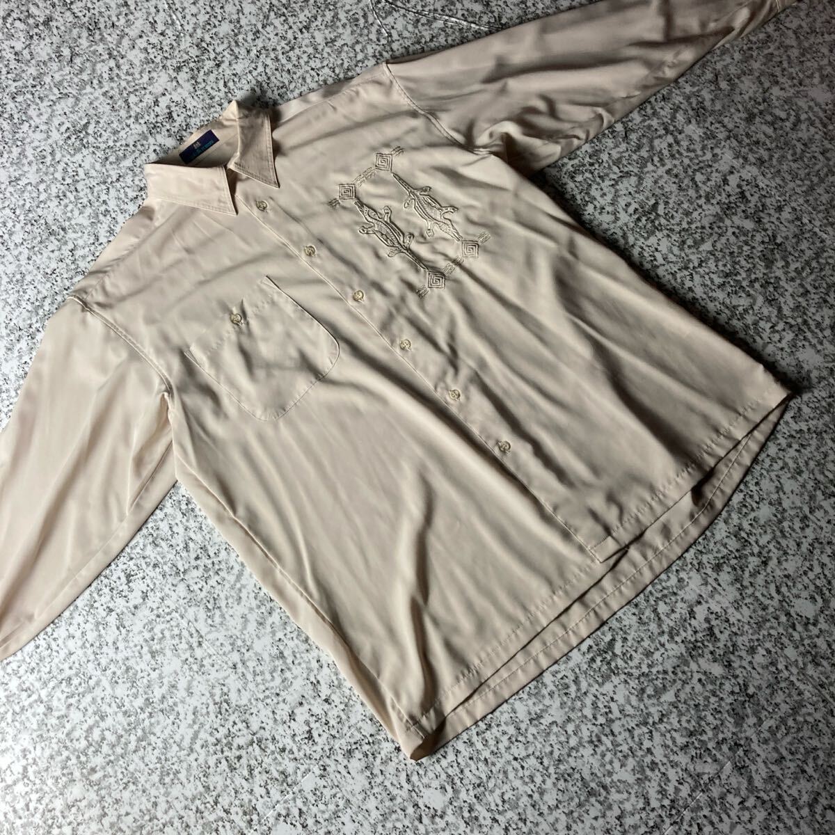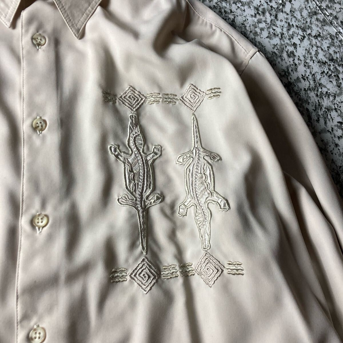 【90sオールド】刺繍デザイン ドレープ とろみ感 L/Sポリシャツ 古着 アイボリー Mサイズ 長袖シャツ