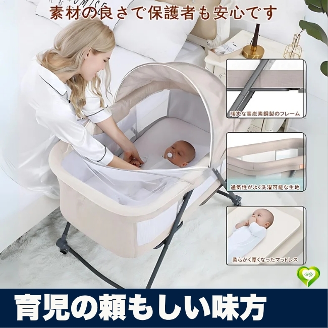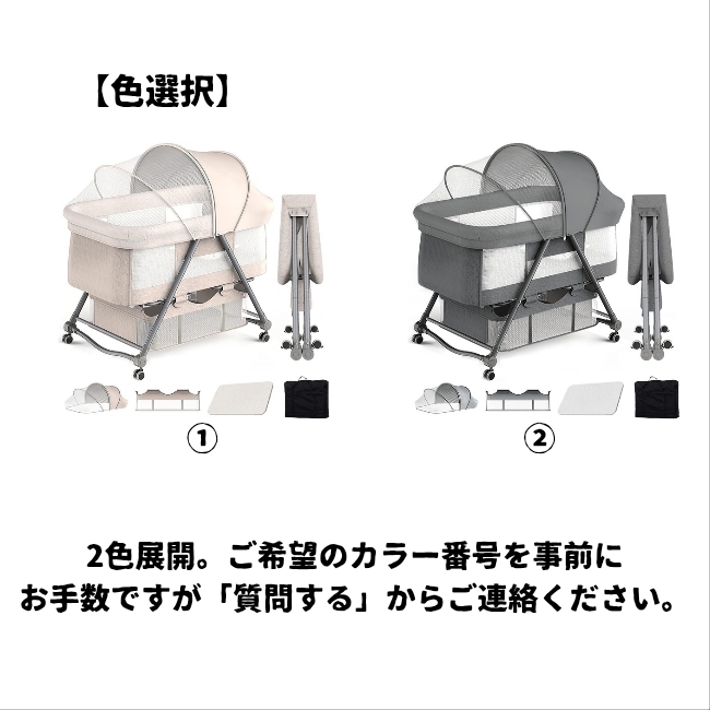 | ご覧いただきありがとうございます。 2色展開です。 ご希望の色を事前に お手数ですが「質問する」からご連絡ください。 【商品名】ベビーベッド―赤ちゃんのための快適な睡眠環境! ■こんな悩みありませんか? - 赤ちゃんの睡眠中に蚊に刺されるのが心配 - 授乳後、赤ちゃんの吐き戻しや鼻づまりが気になる - リビングや寝室でベビーベッドを頻繁に移動させたい ★こんな時におすすめ! - 取り外し可能な蚊帳付きで、赤ちゃんを虫刺されから守ります。 - ベッドを揺りかごに変えることができ、10度のわずかな揺れで赤ちゃんを心地よく寝かしつけます。 - 静音キャスター付きで、床を傷つけずにスムーズに移動可能です。 ------------------------------------------ サイズ: - 93×55×77cm - 折りたたみサイズ:78×55×17cm - 重さ: 7.5kg - 適用年齢:0ヶ月~24ヶ月 セット内容: - ベビーベッド本体 - マットレス - 蚊帳 - 収納かご - 収納バッグ 素材: - 高炭素鋼+綿+メッシュ 特徴: - 組立簡単:工具不要で簡単に組み立て可能。コンパクトに折りたたみ可能で、収納バッグ付き。 - 2つのモード:静音キャスター付きで移動が楽々。弧状のパイプでベッドから揺りかごに変身。 - 多機能デザイン:角度調節可能で、授乳後の嘔吐や鼻づまり防止。大容量収納スペース付き。 - 安全で上質な素材:頑丈な高炭素鋼フレームとやさしい生地とマットレス。両側メッシュデザインで空気の循環確保。 ご注意: - 画面の色差により実物と異なる場合があります。 ご不明な点などございましたら、 お気軽に「質問する」からお問い合わせ下さい。 |
