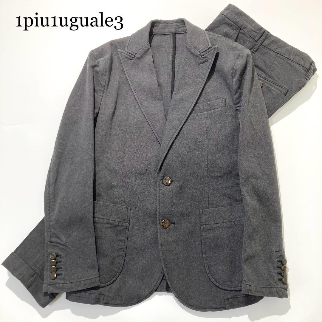 【未使用級】1piu1uguale3 セットアップ デニム グレー ロゴボタン