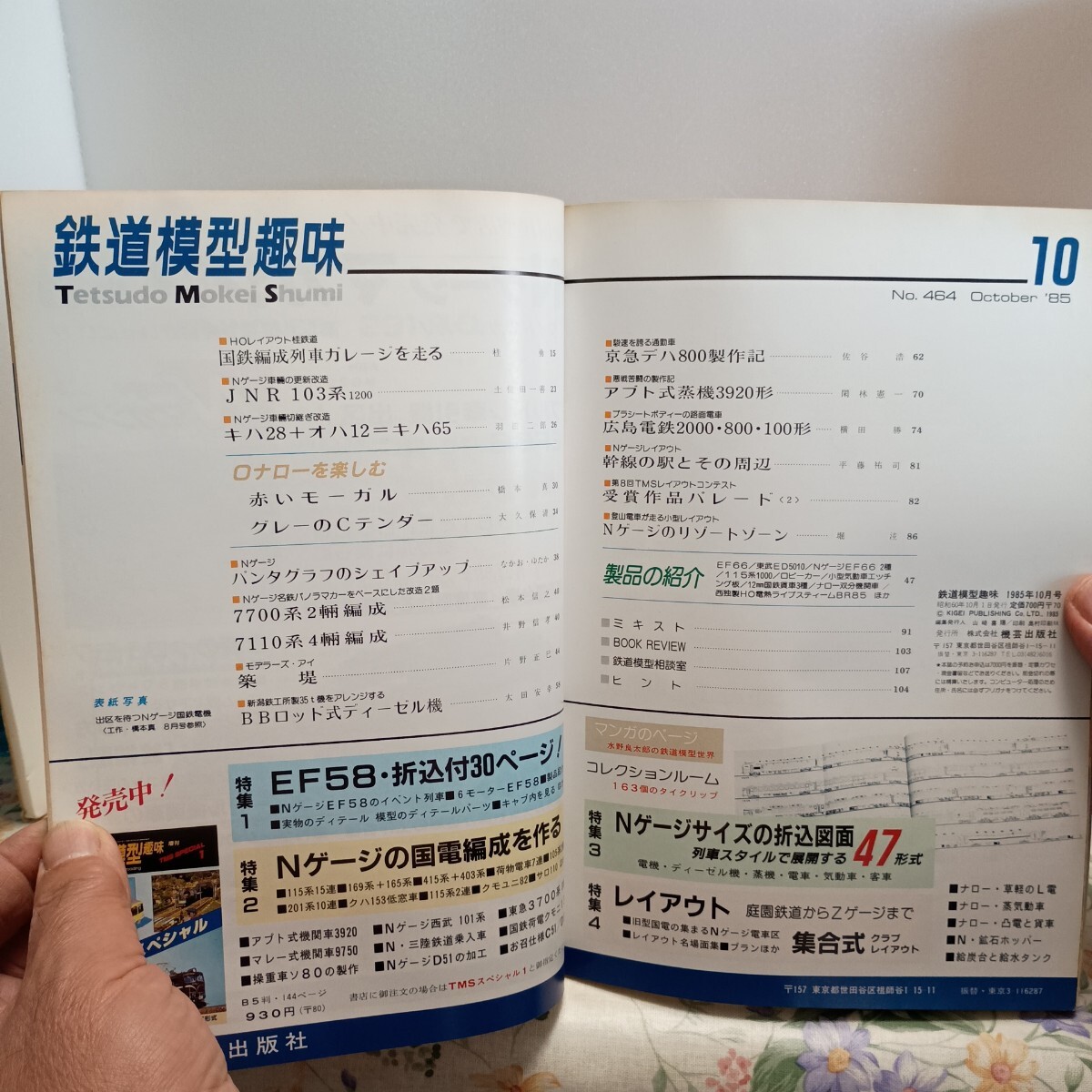 鉄道模型趣味 昭和 60年10月発行 464 Hobby of Model Railroading Nゲージ103系1200 東急800形 Nゲージキハ65 ロッド式DL 名鉄1700