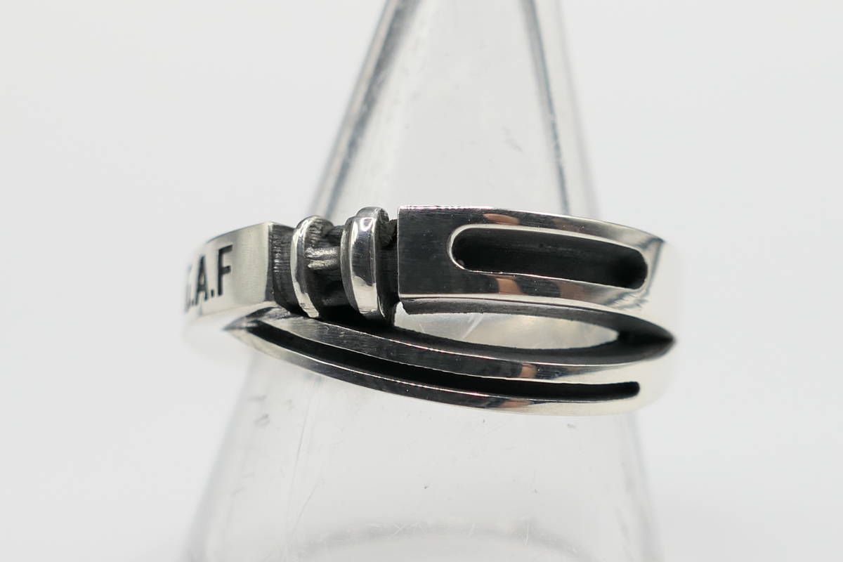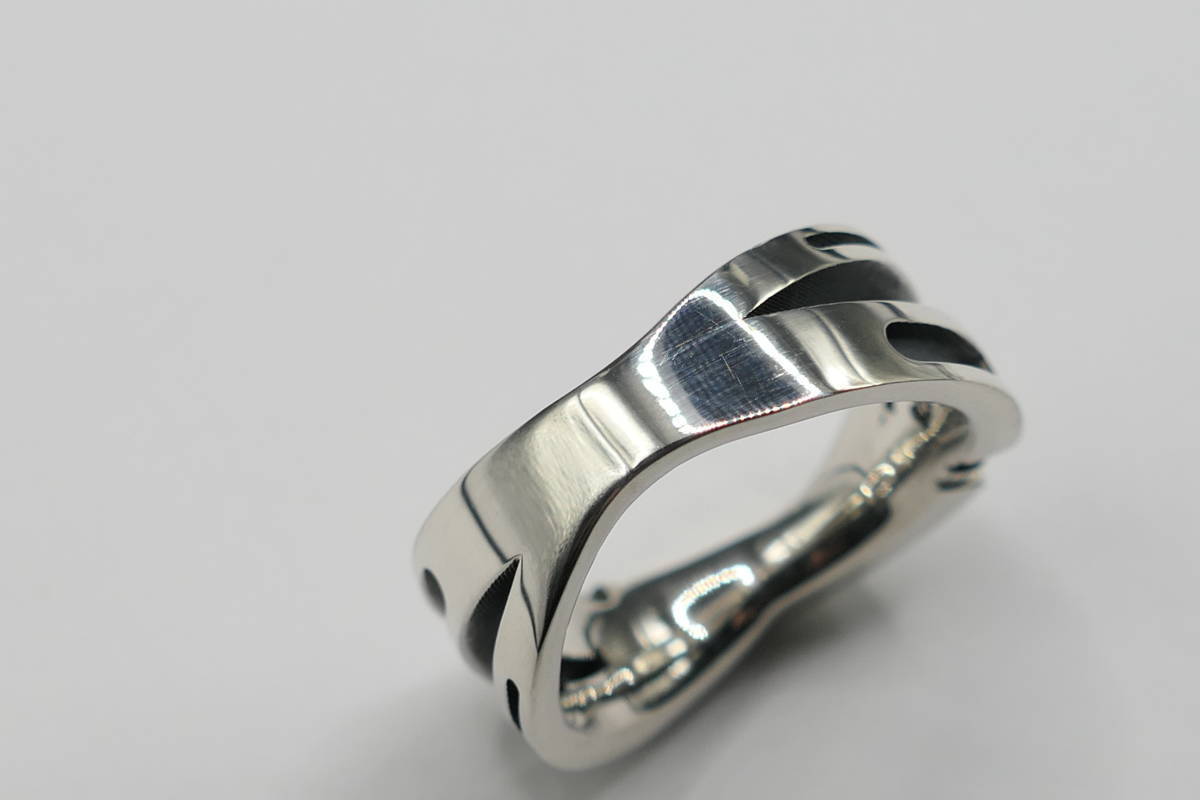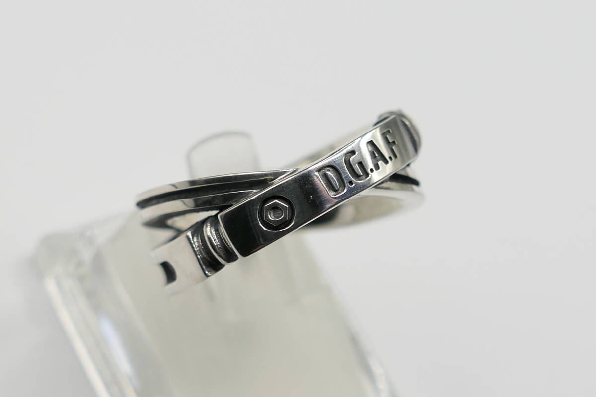 バイク部品のようなパーツを組み合わせたクロスリング。