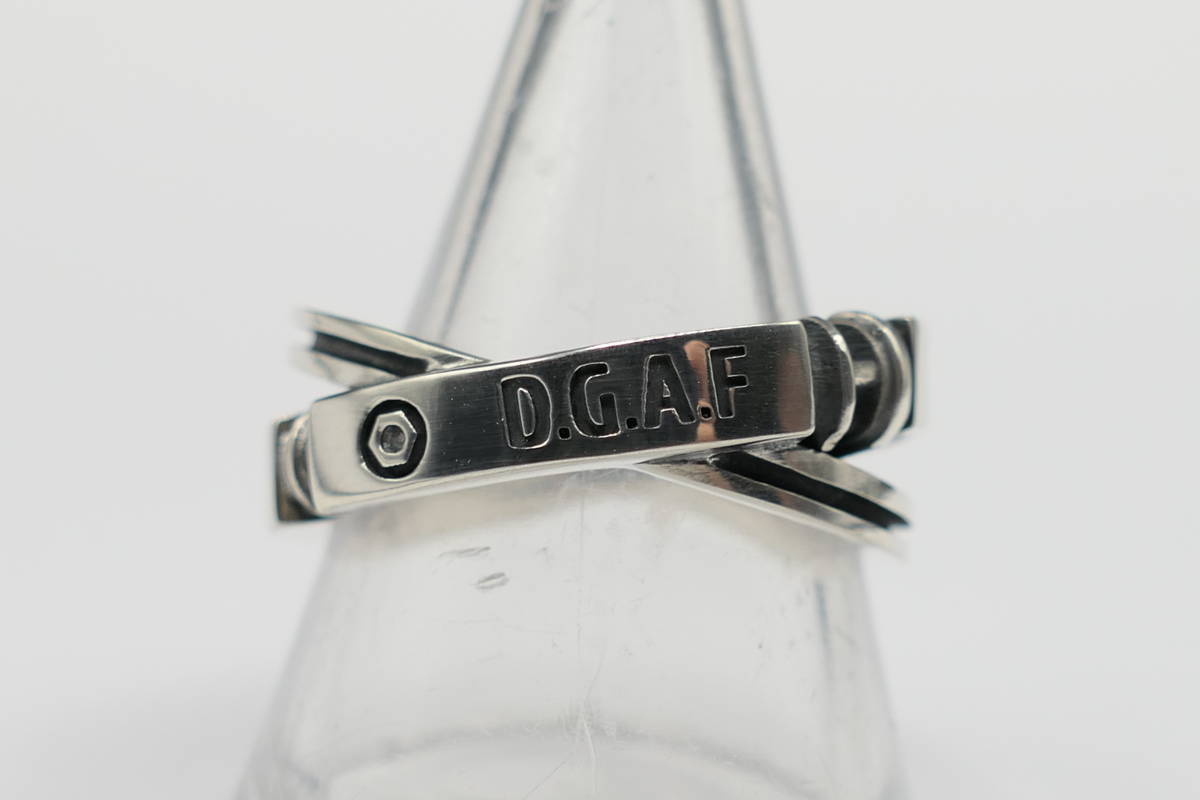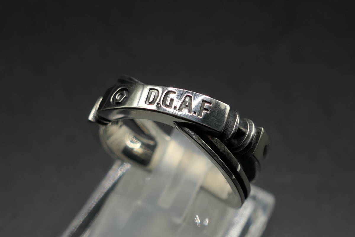 刻印されている「DGAF」は「Don’t give a f××k」の略で、「関係ねぇ」「気にしねぇ」という意味のスラングです。