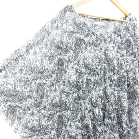 マウジー MOUSSY ブラウス カットソー ロング丈 七分袖 総柄 F ブラック 黒 ホワイト 白 /YM26 レディース