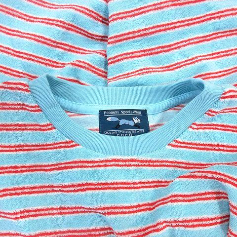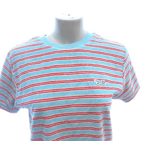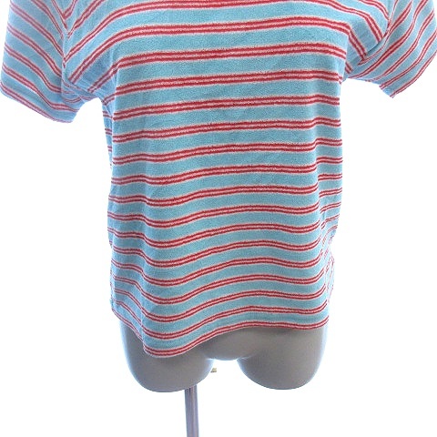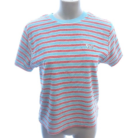 コーエン coen ぺニーズ PENNEYS カットソー Tシャツ クルーネック ワッペン ボーダー 半袖 M 水色 ライトブルー /AU レディース