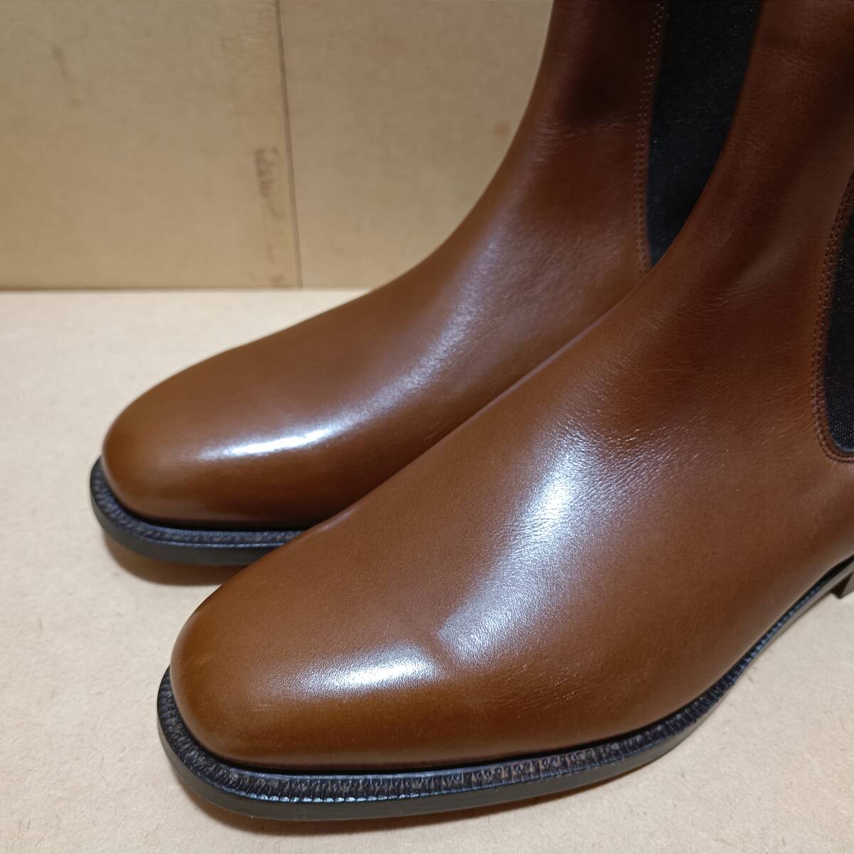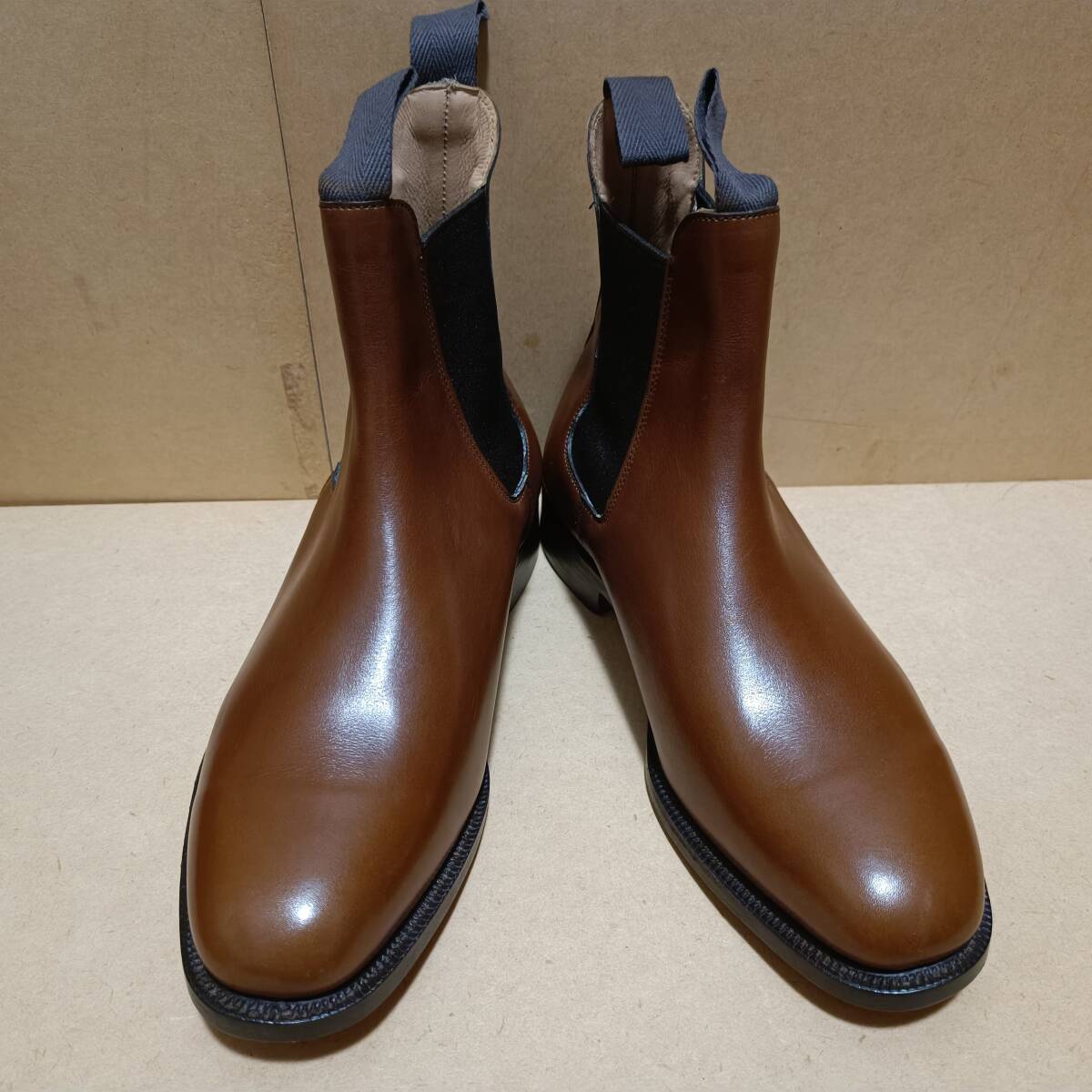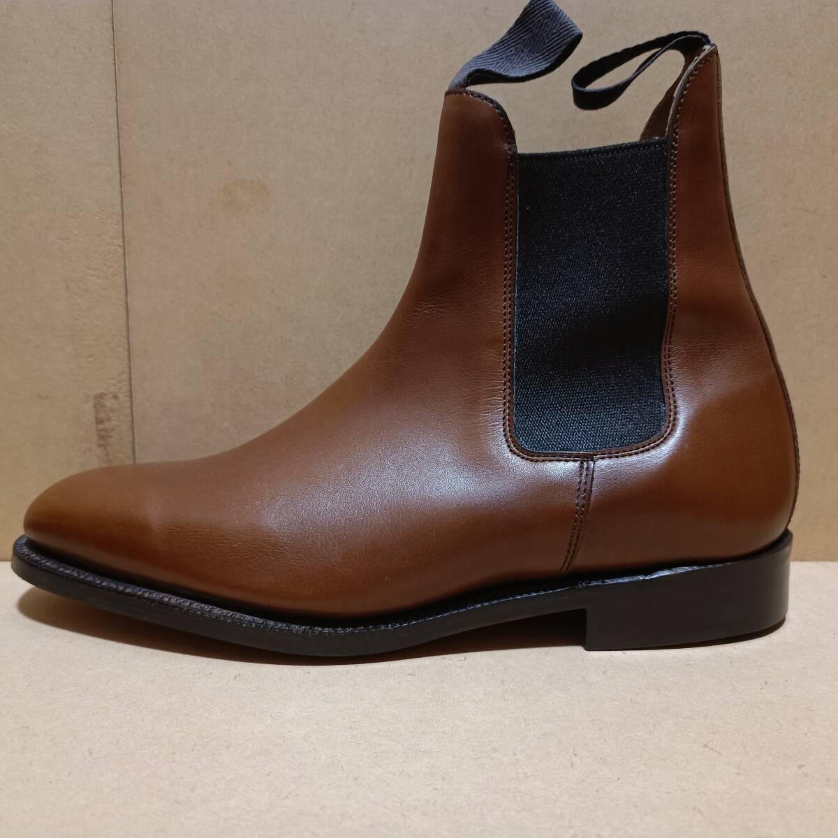 本製品はモデル名「Lambourn」。チェスナッツ色のアンティークカーフを用いたチェルシーブーツです。