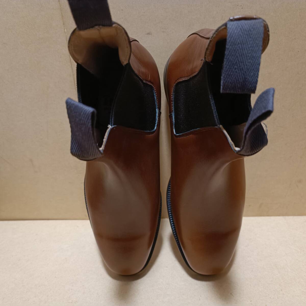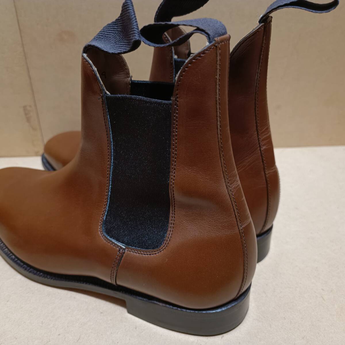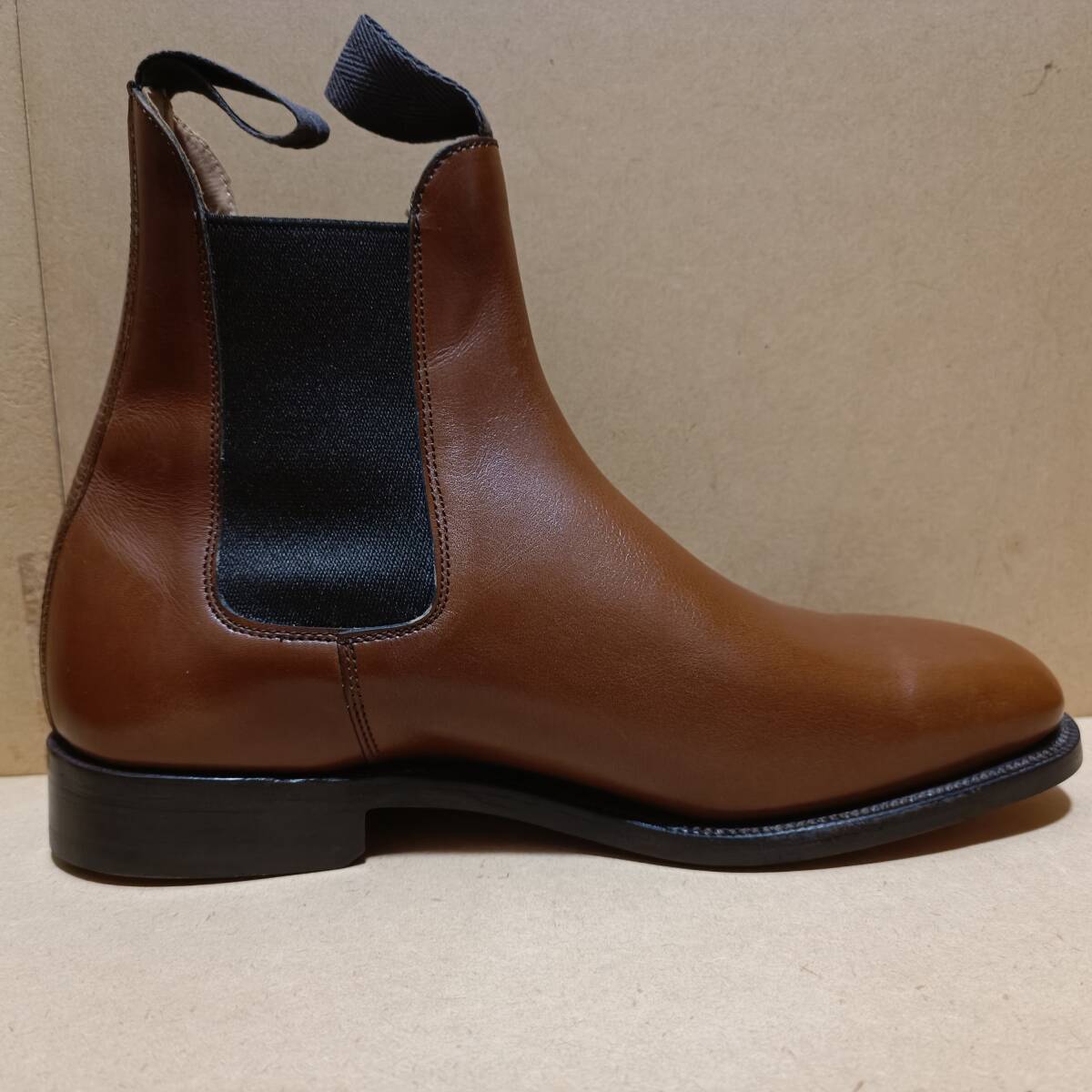 本製品はモデル名「Lambourn」。チェスナッツ色のアンティークカーフを用いたチェルシーブーツです。