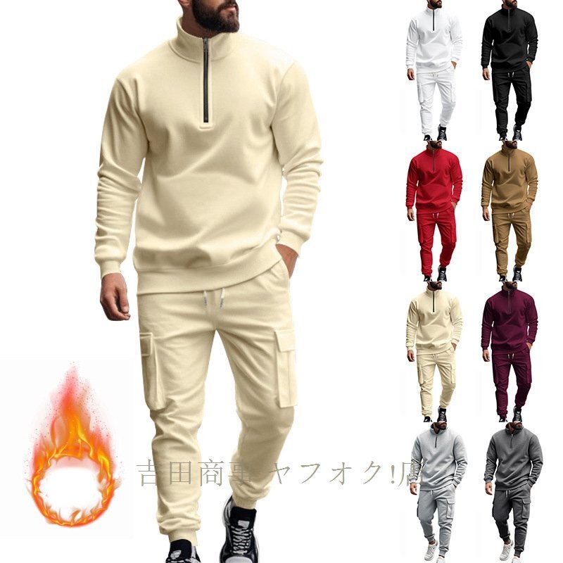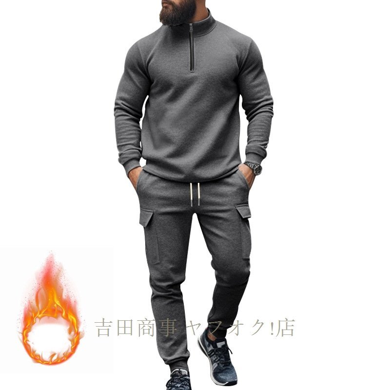 ☆新品ジャージ メンズ 上下セットアップ スウェット 立ち襟 部屋着 運動着 ルーム トレーニング スポーツウェア 裏起毛 秋冬 厚手 防寒