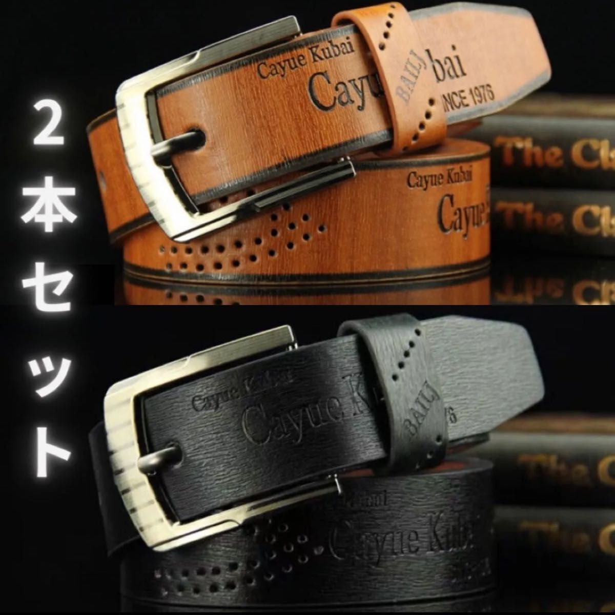 ヴィンテージベルト カジュアル メンズ アメカジ スーツ 黒 茶 おしゃれベルト サイズ調整可能 2本セット