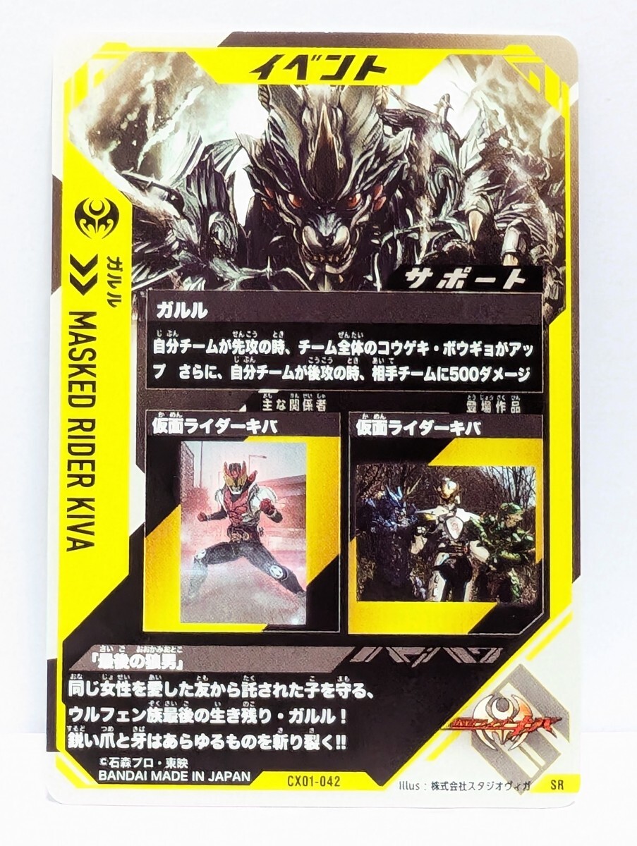 「仮面ライダーバトル ガンバレジェンズCX1弾 ガルル(SR CX01-042)」を出品します。「おまとめ」可能な方は4枚までミニレター送料85円でお取扱いできます。5枚以上の場合は定形郵便で送料別途計算となります。