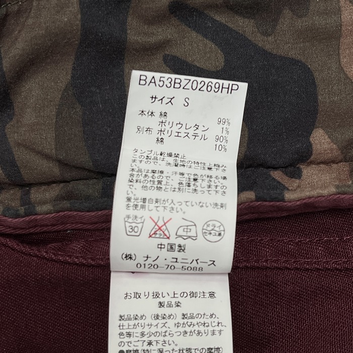 | 商品タイトル | ナノユニバース nano・universe トラッカージャケット ワークジャケット 一部迷彩柄 長袖 綿×ポリウレタン S ワインレッド レディース |