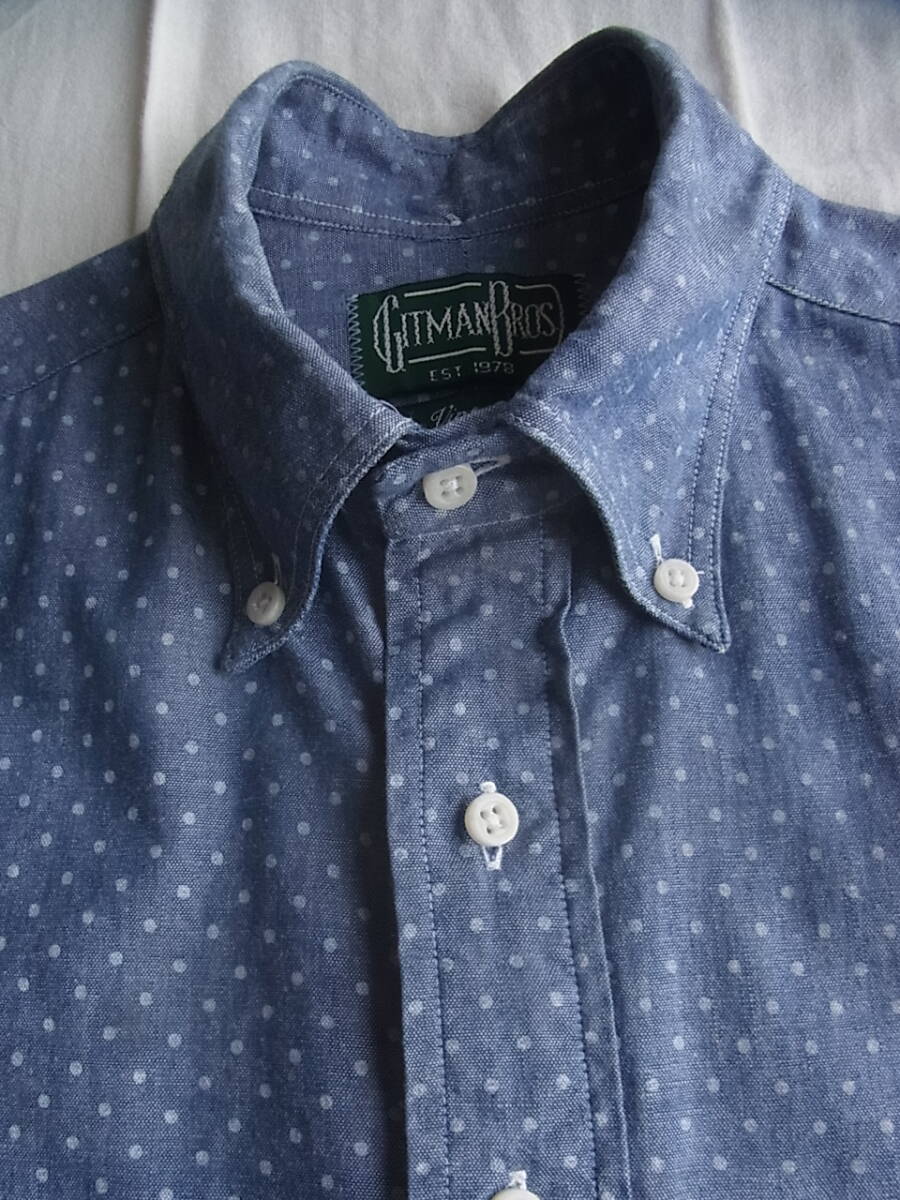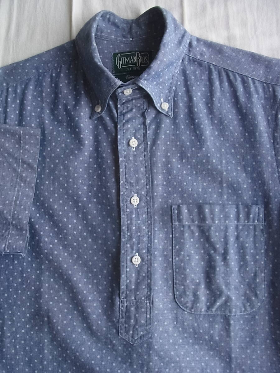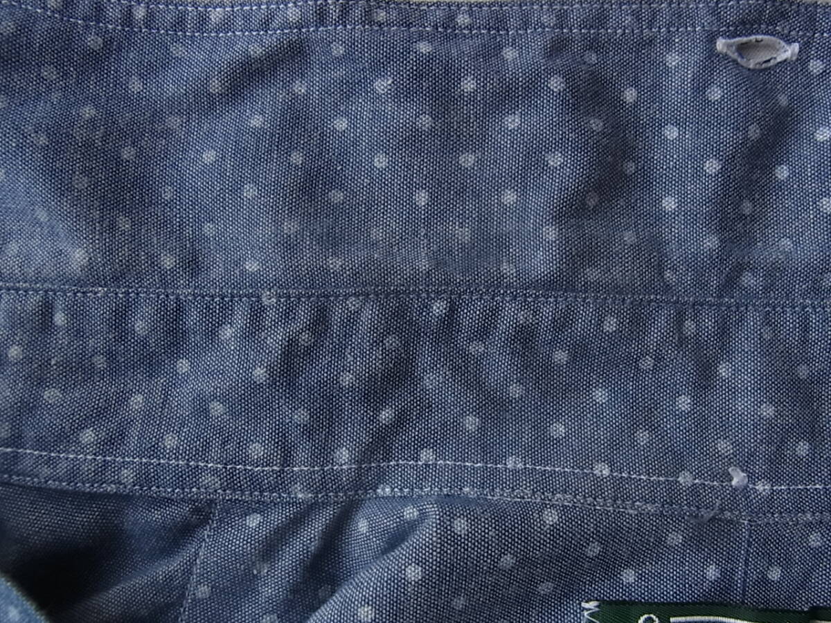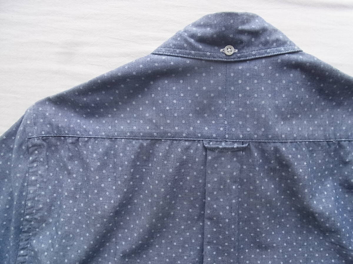 fennica BEAMS別注でギッドマン ヴィンテージのインディゴシャンブレー素材、ドットプリントのプルオーバーボタンダウンシャツになります。USEDで着用感は御座いますが、特に目立ったダメージ等は御座いません。