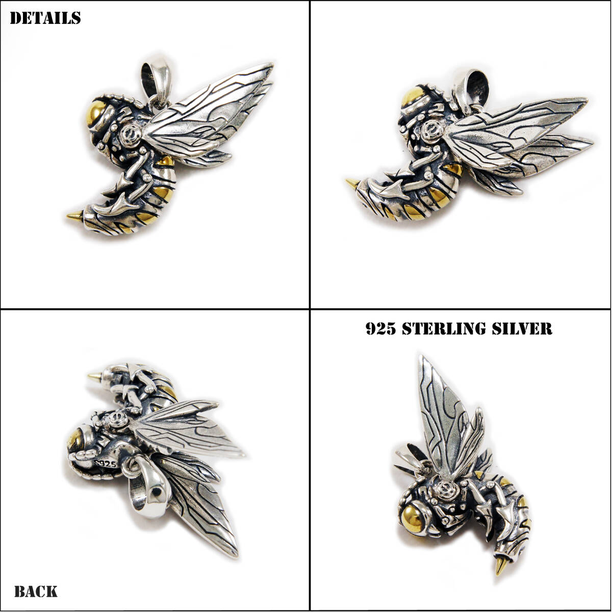 スズメバチ/ホーネット真鍮 925シルバーペンダント925刻印ありTOU-008