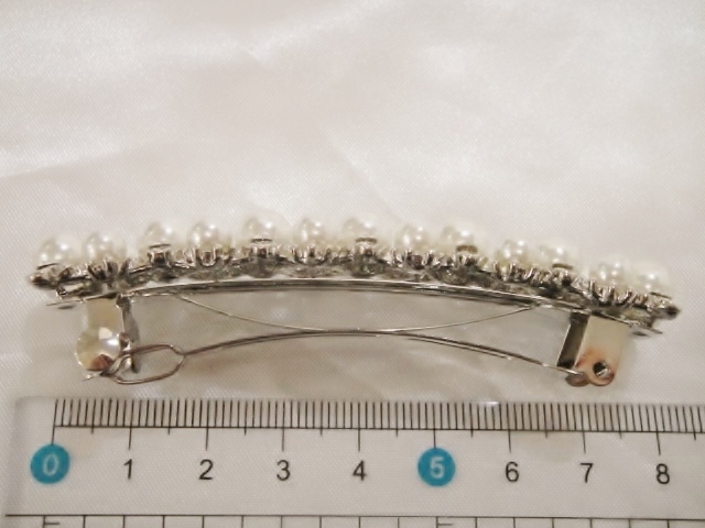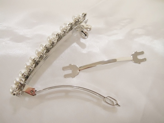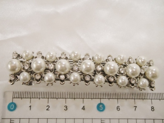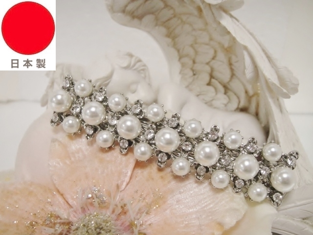 ♪ 新品 バレッタ 日本製『高品質/ロングサイズ/レクタングル/大パール&スワロフスキー』♪