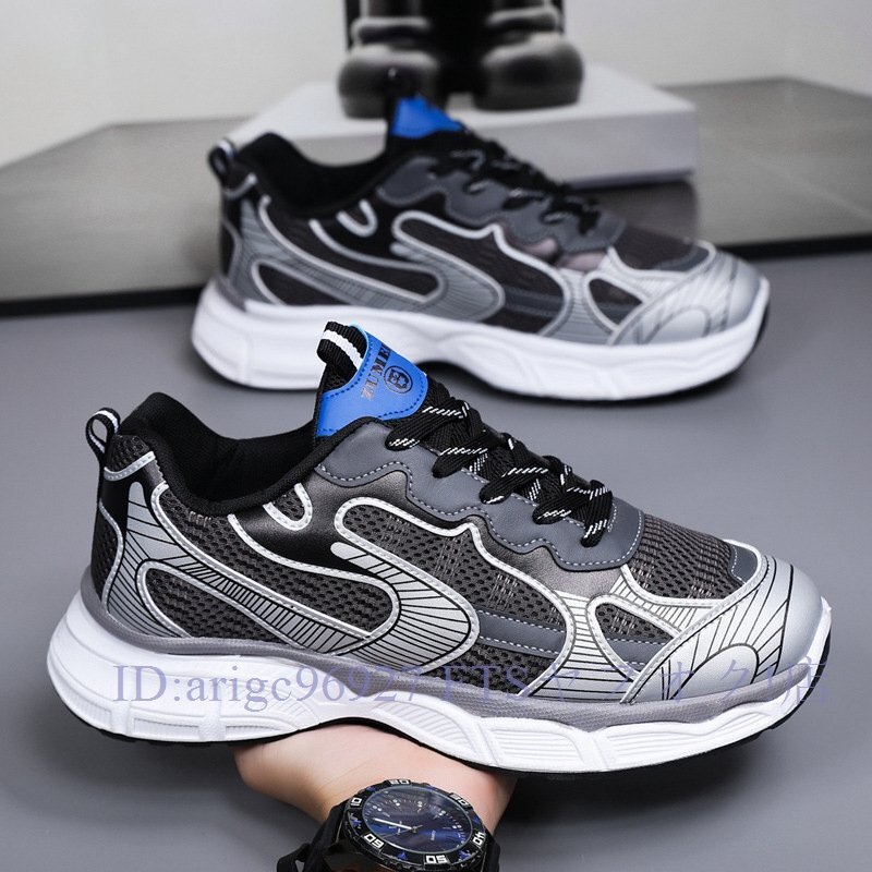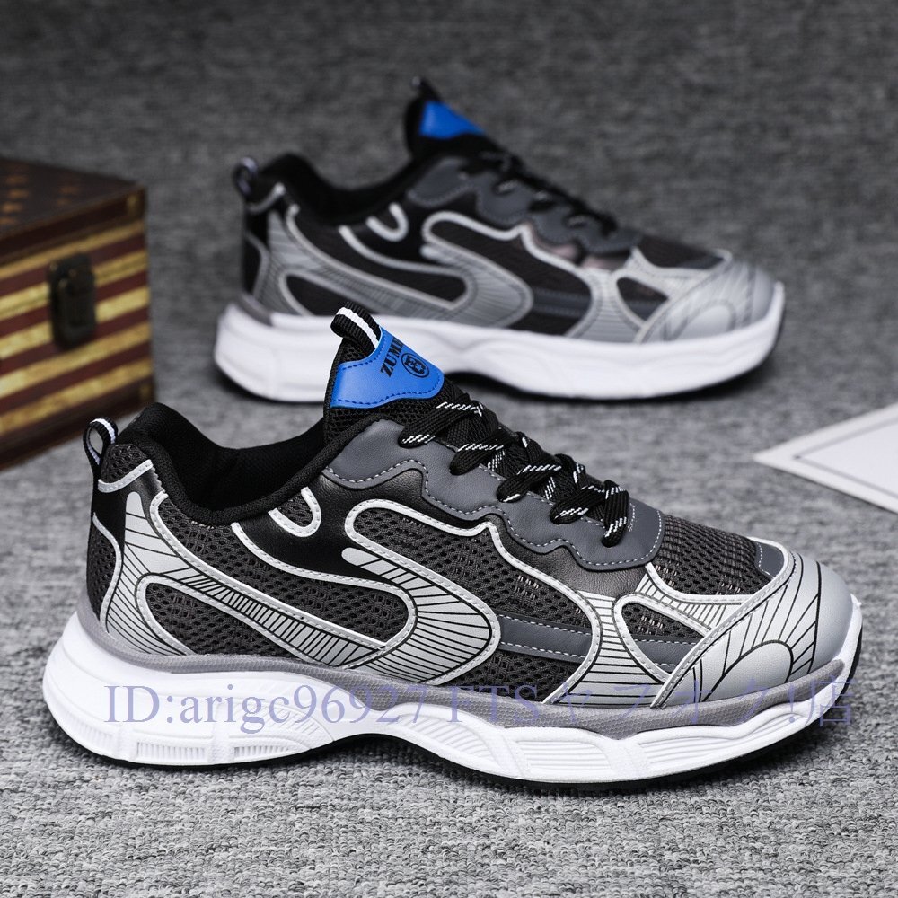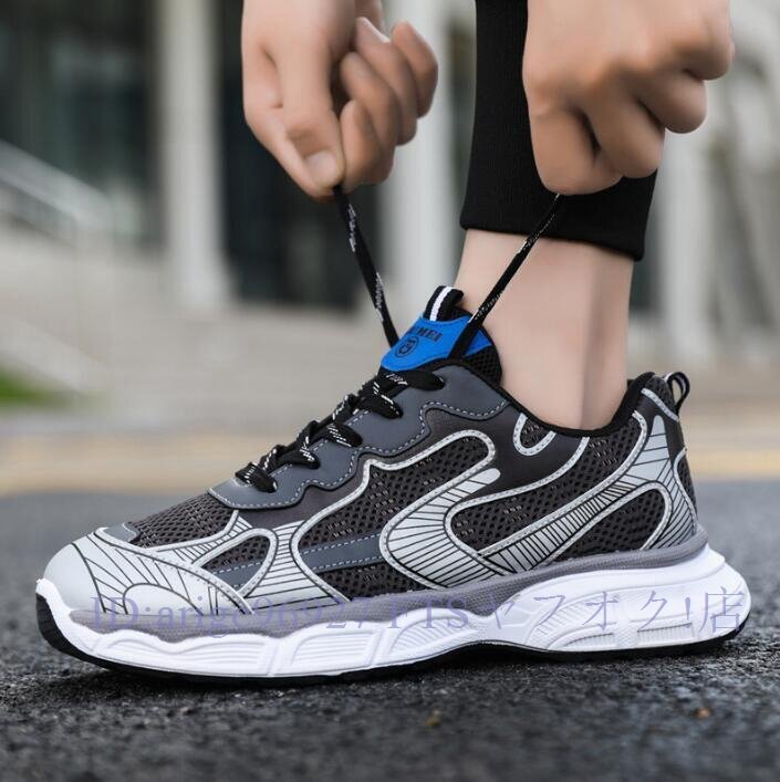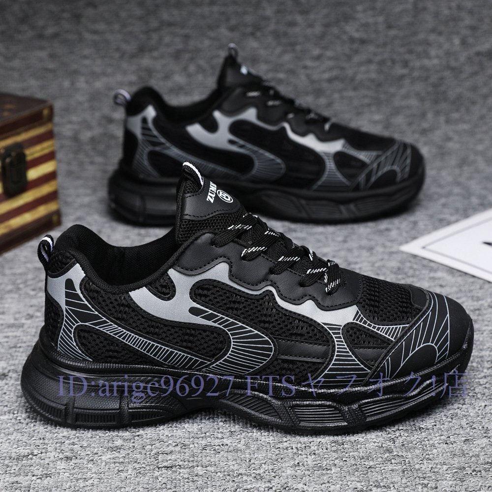 ★新品スニーカーランニングシューズ メンズシューズ 厚底 幅広 スポーツ 運動靴 ジョギングシューズ クッション ブラック 25.5cm