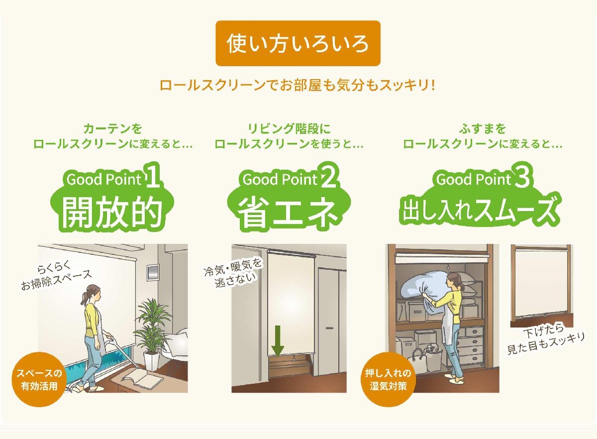 ●材質/スクリーン:ポリエステル、ヘッドレール:アルミニウム、ボトムパイプ:アルミニウム、ロールパイプ:アルミニウム