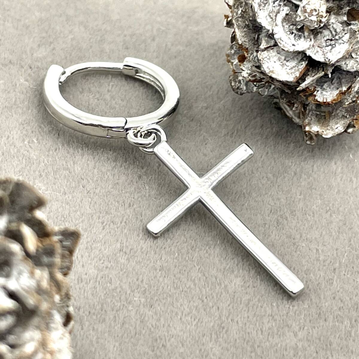 クロス チャーム フープピアス ◆ リングピアス メンズ シルバー925 18G 新品 人気 未使用 ストリート カジュアル 十字架 片耳 【PN253-4】
