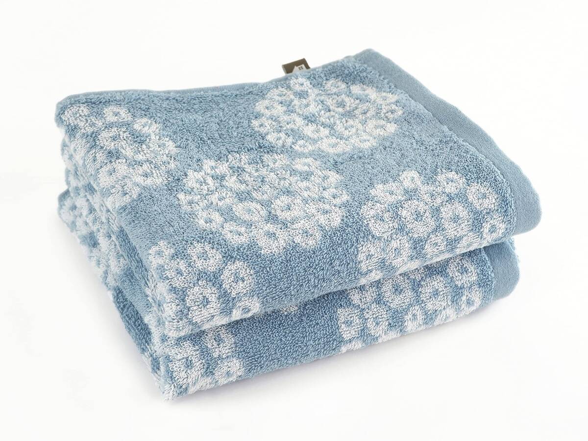 Kosugizen Onnela pieni(オンネラ ピエニ) フェイスタオル 甘撚りパイル イッピー イッピー ブルー 34×80㎝ 北欧調のジャガードモチーフ 中厚(標準)タイプ 2枚セット aONZG-309-2BL