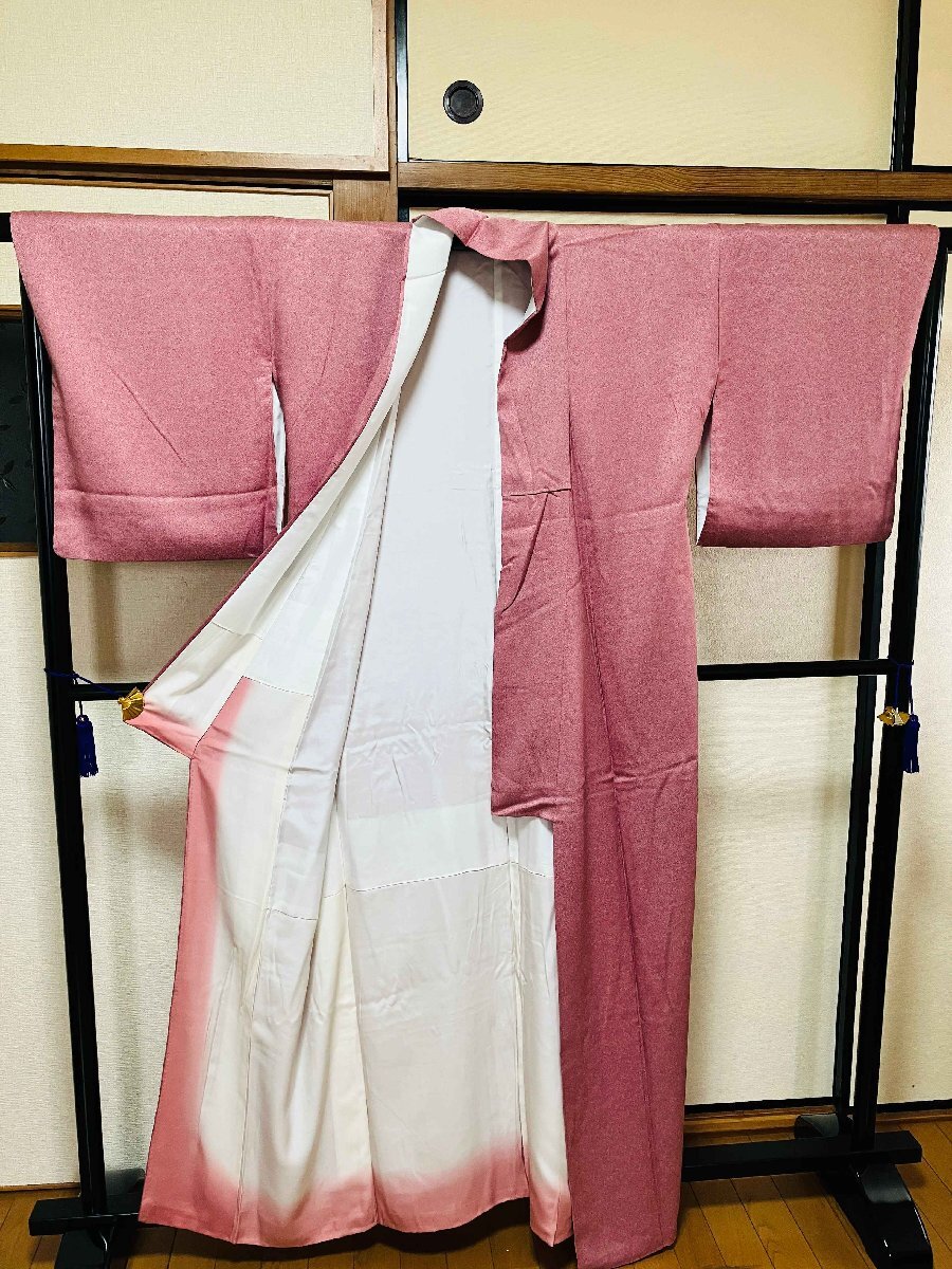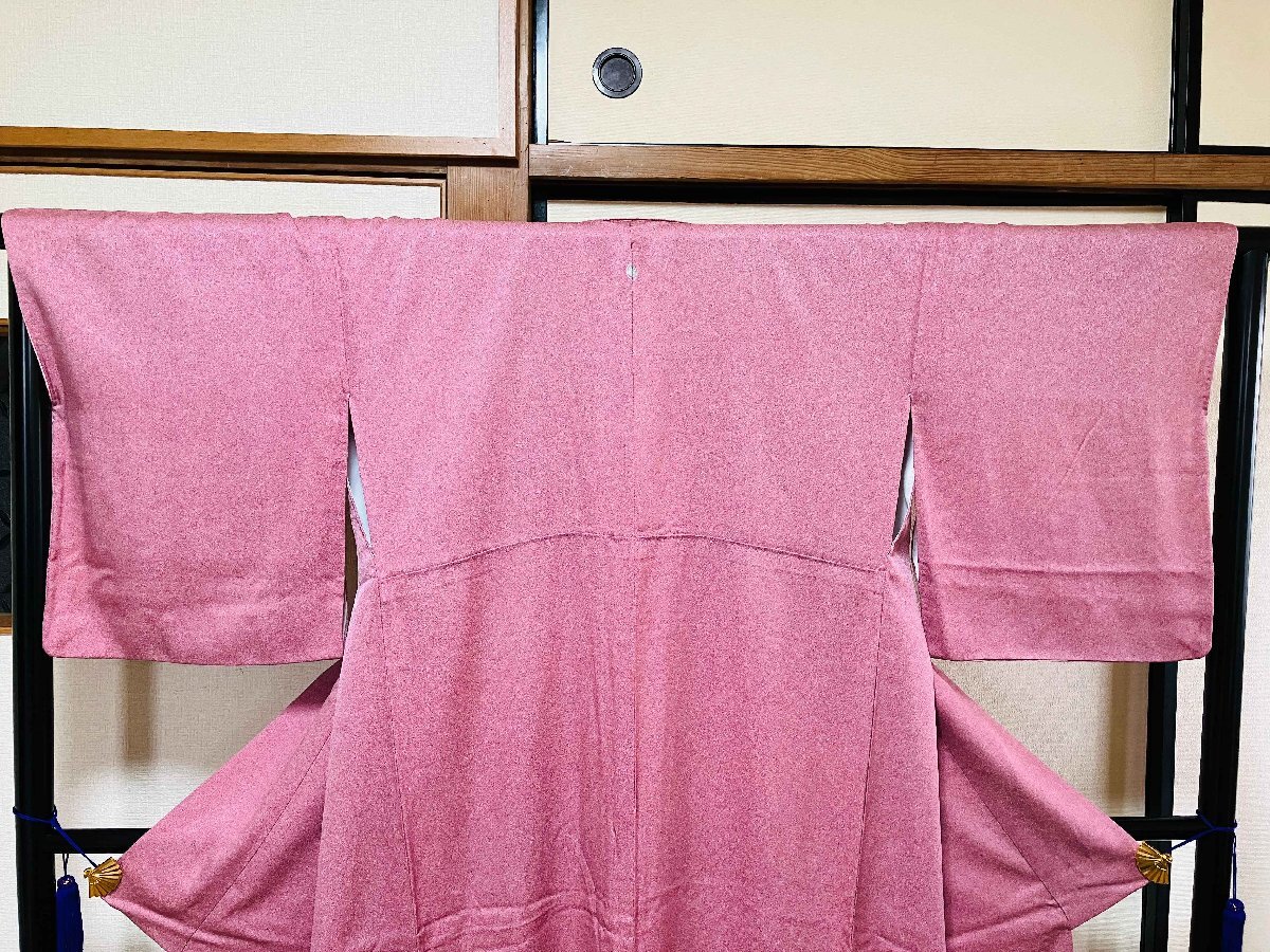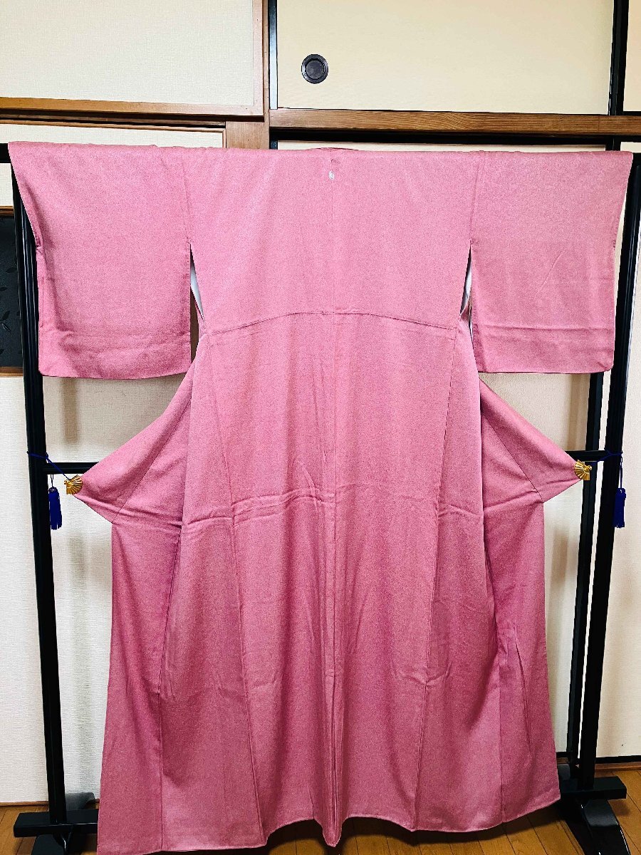 着物 江戸小紋 鮫 正絹 ピンクに近い赤色系 一つ紋 五三桐の紋 / 身丈約154cm 裄丈約66.5cm 袖幅48.5cm 後幅28.5cm 前幅24.5cm TCS着物 W24